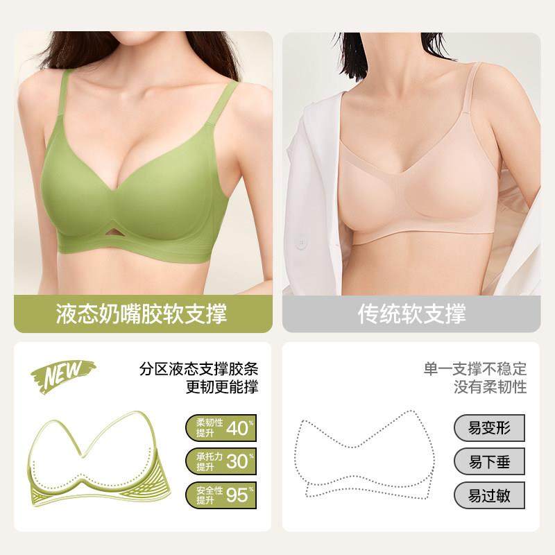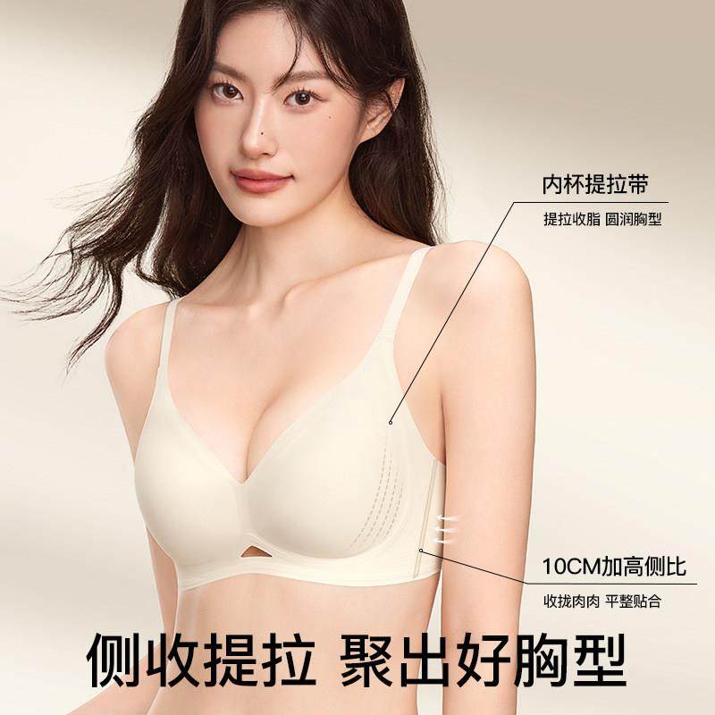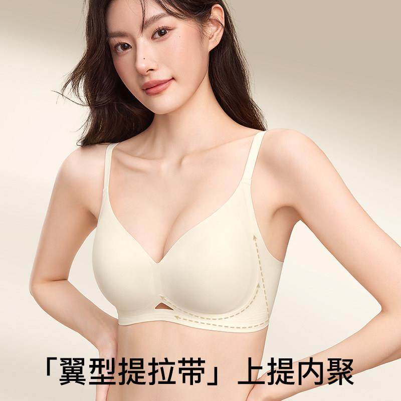 好奇蜜斯小胸聚拢内衣女显大无钢圈文胸罩套装 不空杯防下垂夏薄粉