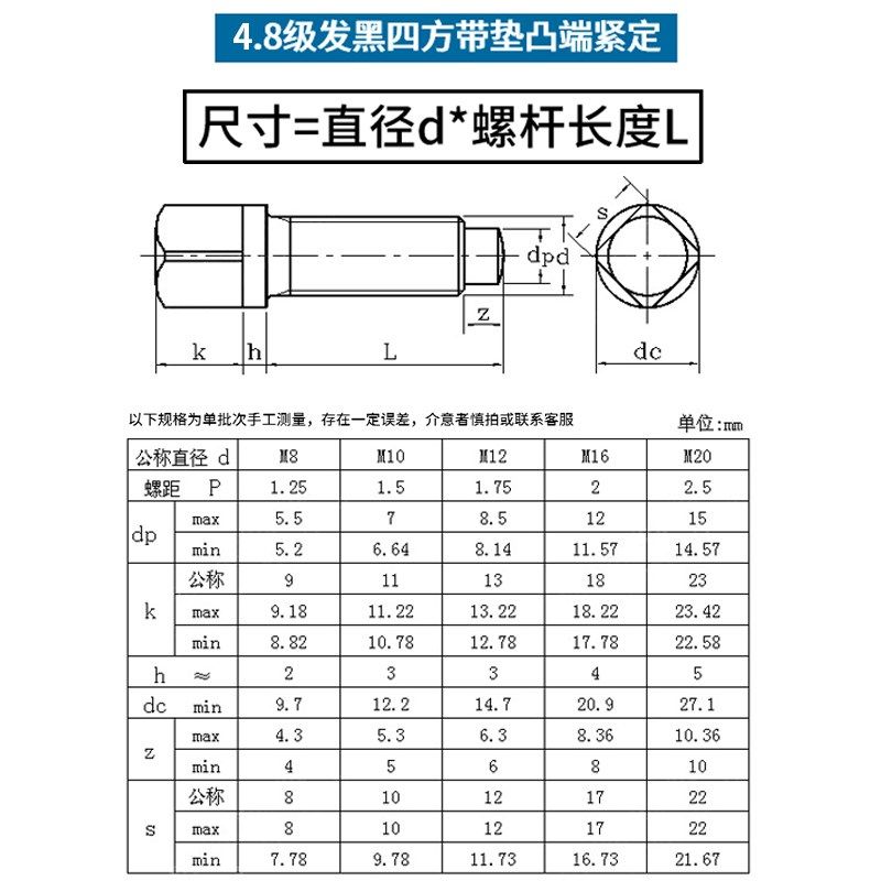 4.8级方头紧定高强度刀架螺丝带垫凸端紧定螺钉GB8 速发M02 M21