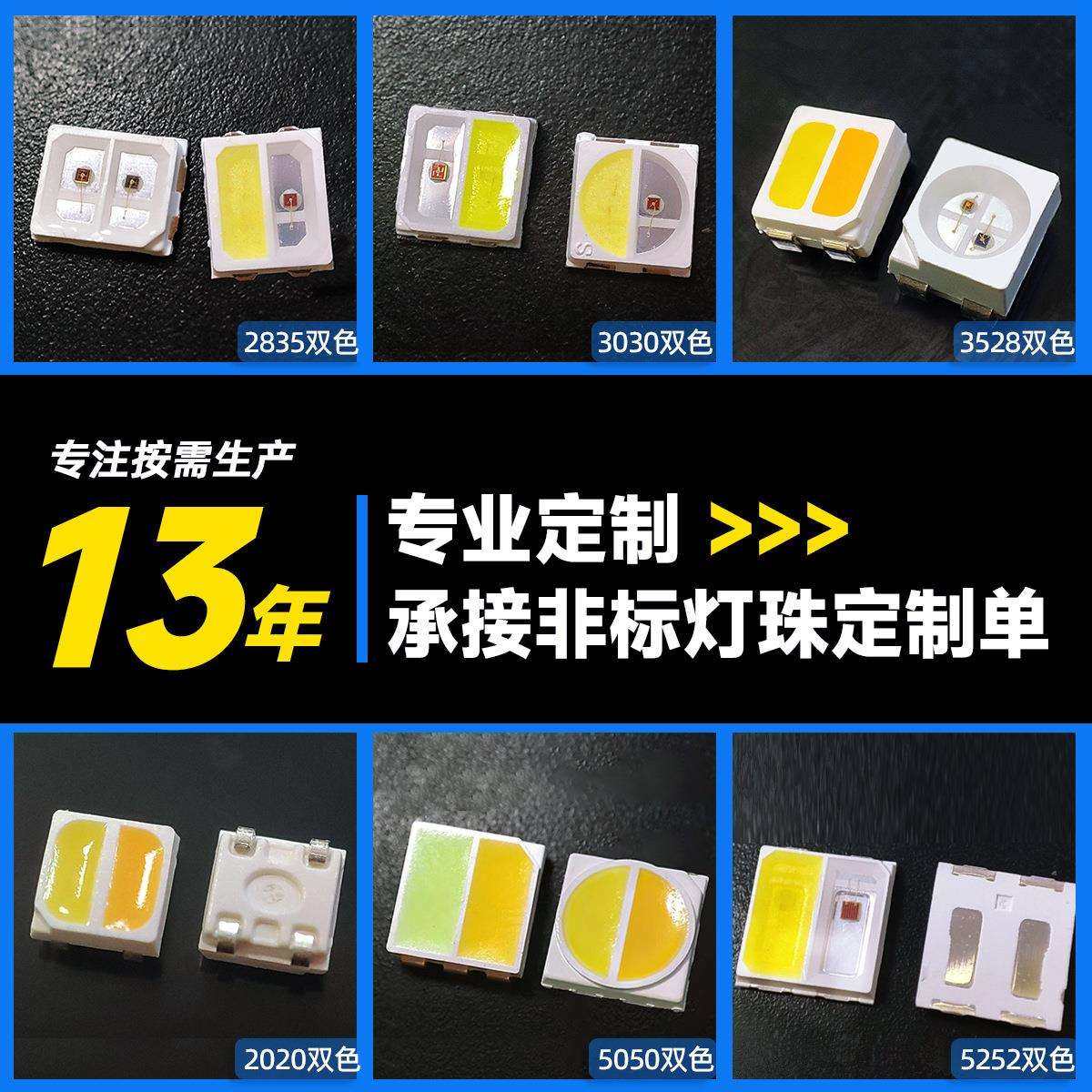 5050双色高显灯珠三色温白光5054二合一摄影补光红蓝双色贴片led