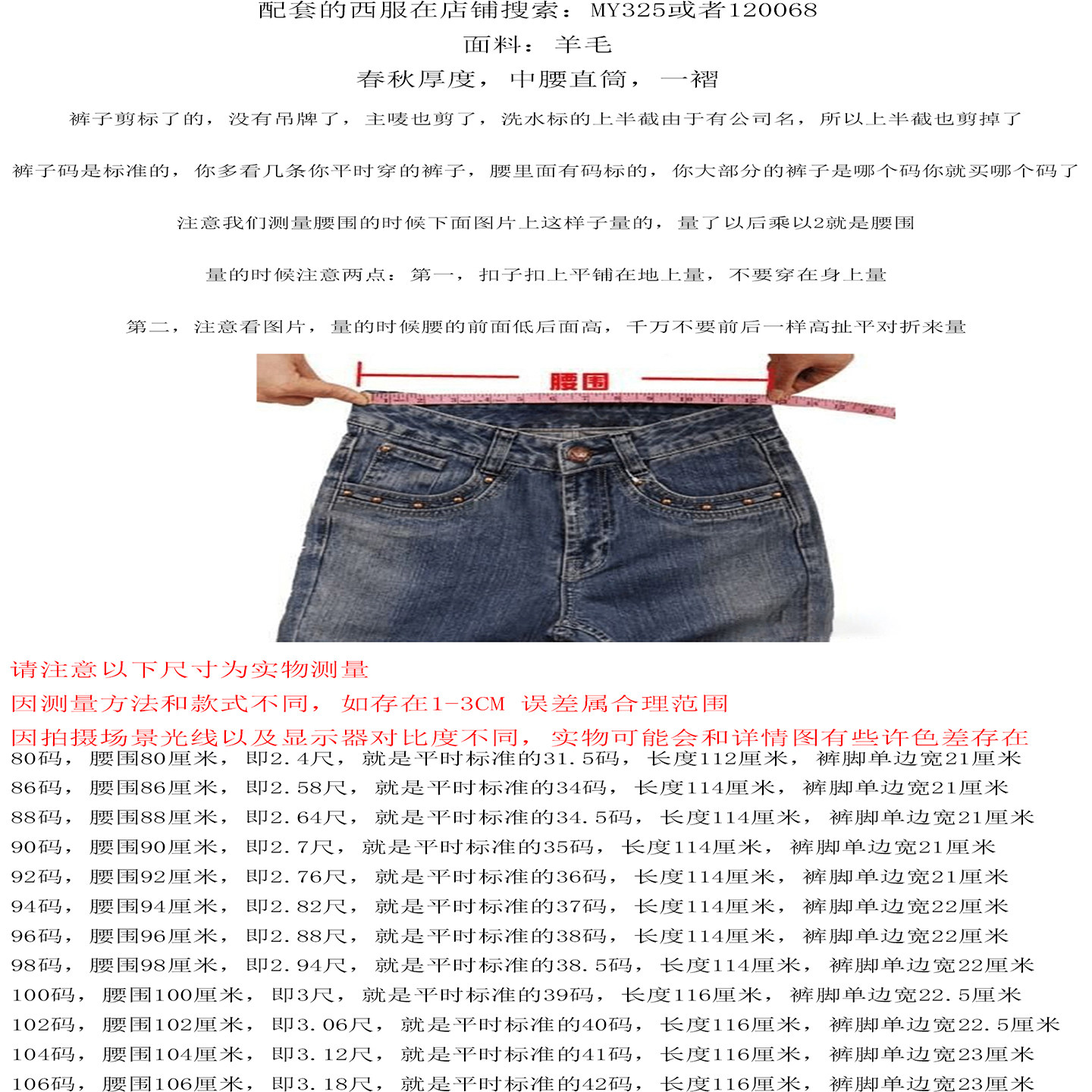 商品标签:西裤深蓝色120068