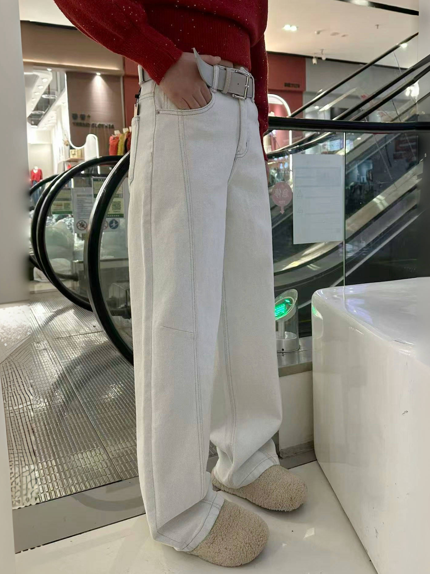 直筒弹力休闲显瘦 老钱灰色弯刀裤 欧货蓝舟牛仔裤 女2026早春新款