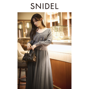 SWNO255014 高腰薄纱A字半身裙套装 SNIDEL2025秋冬新品 V领针织开衫