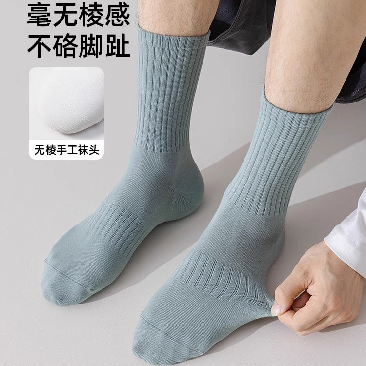吸汗抑菌 款 棉风礼10A抗菌防臭100%棉袜子男款 纯棉全棉中筒袜四季