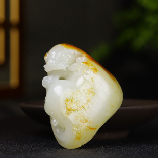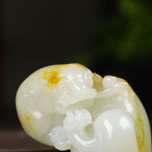 新疆和田玉白玉籽料貔貅手把件手玩瑞兽赐福121g 古晨珠宝