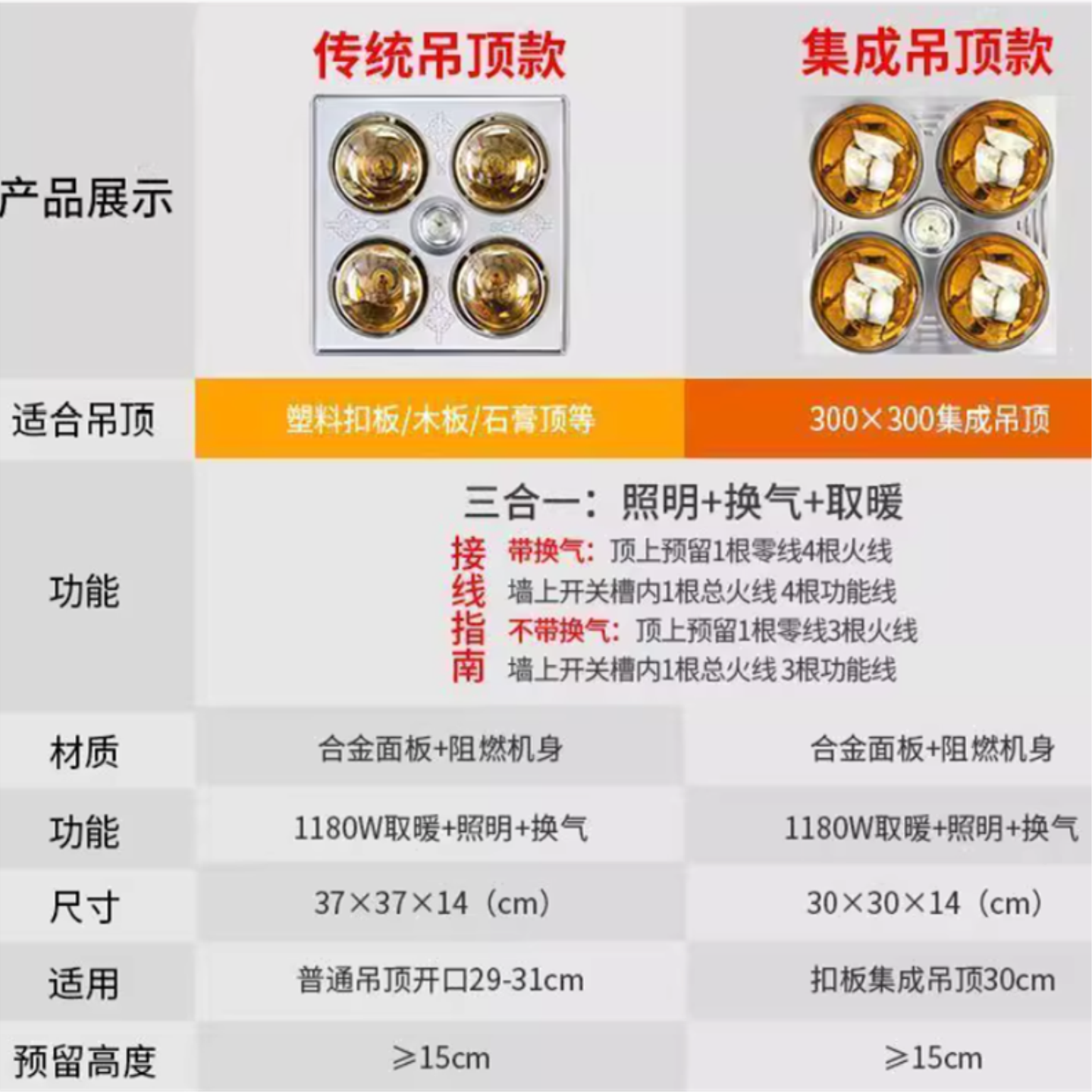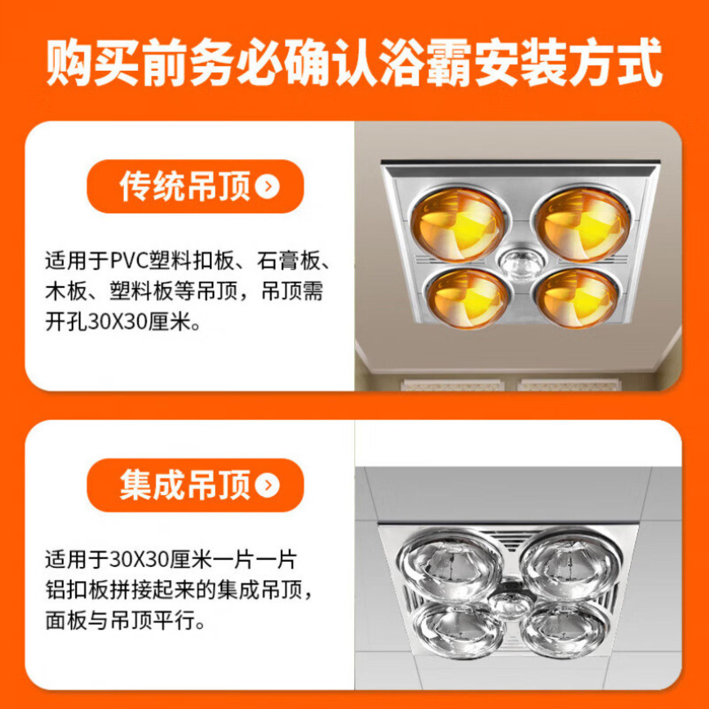 小卫生间浴霸洗澡间取暖300x300集成吊顶30公分制热浴霸灯浴室pvc