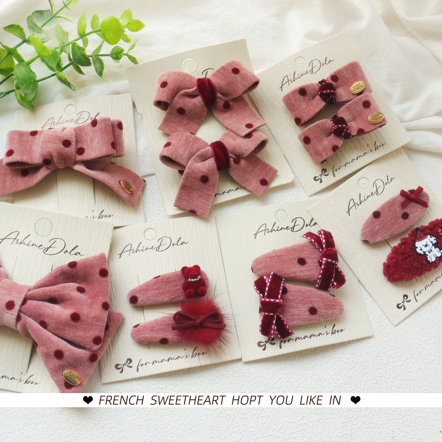 DODOGOGO甜美小爱心毛绒发夹女2025新款 新年红色可爱BB夹秋冬发饰