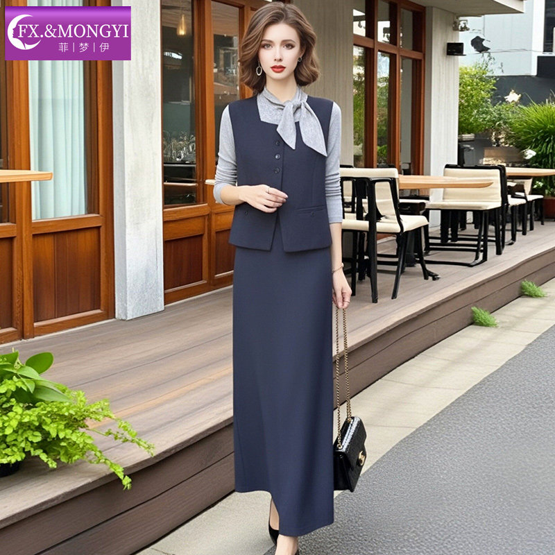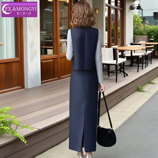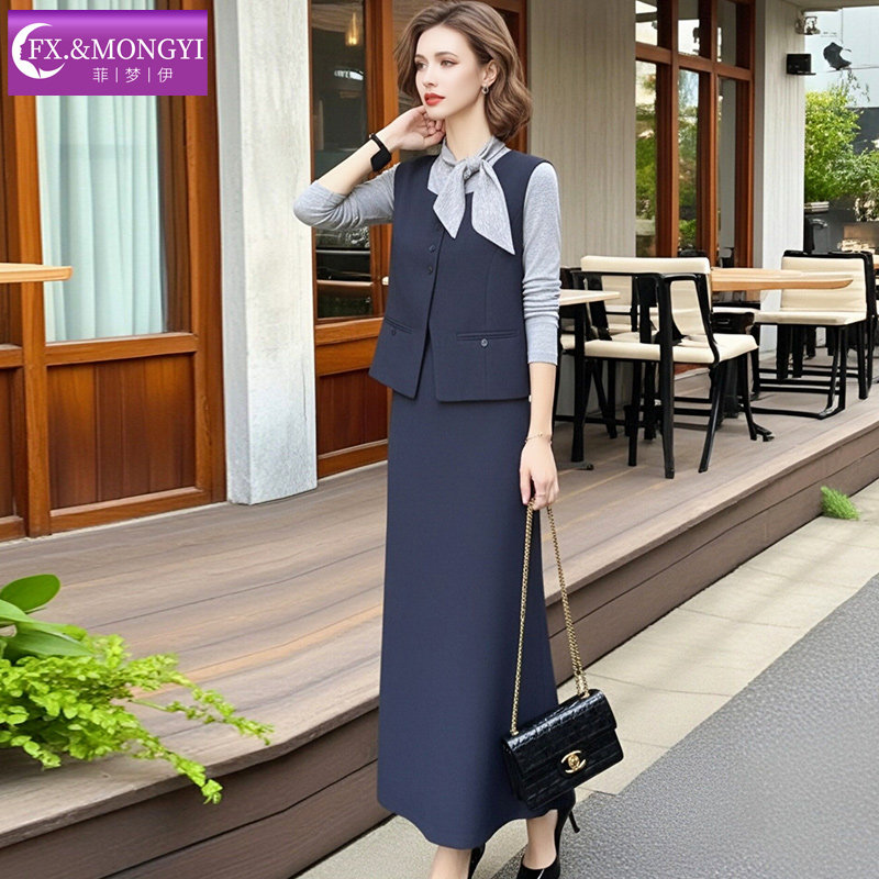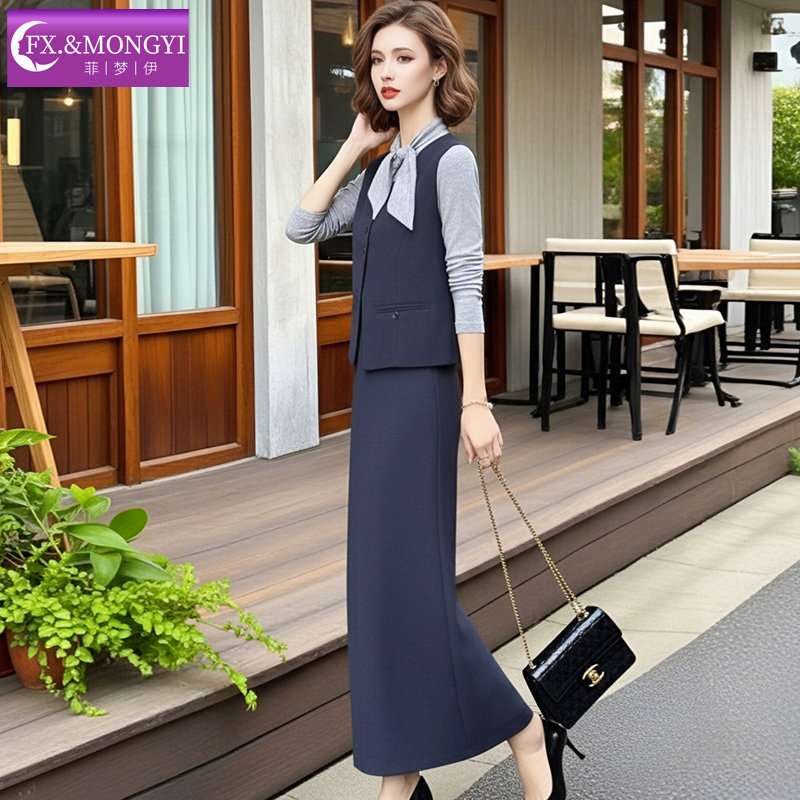 T恤配马甲外套裙子 设计感系带打底衫 菲梦伊时尚 休闲三件套女冬季