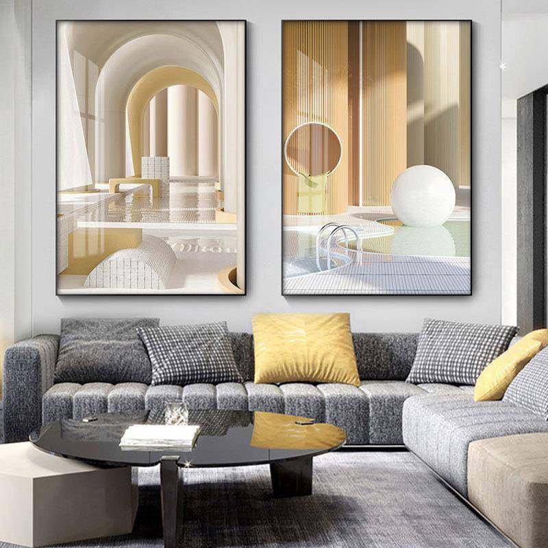 饰画北代欧B 象风景酒店会所轻奢 667风现简约艺术空几何建筑抽装
