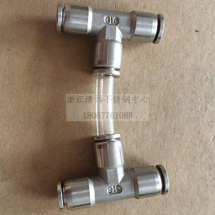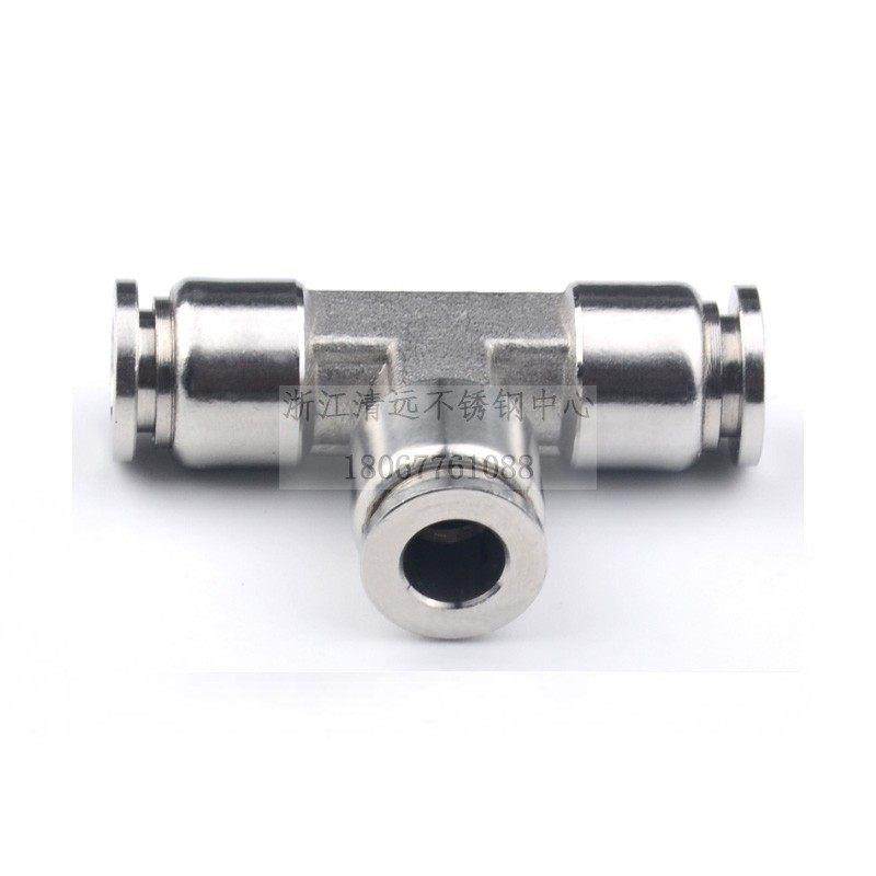304 316不锈钢PE型T型快插三通气管气动接头气体PEG变径三通快插