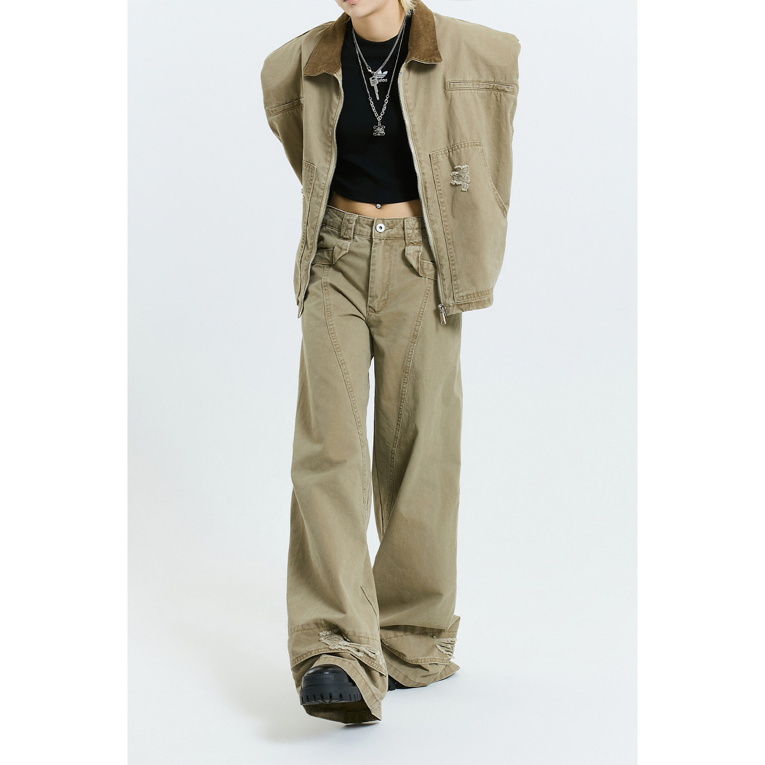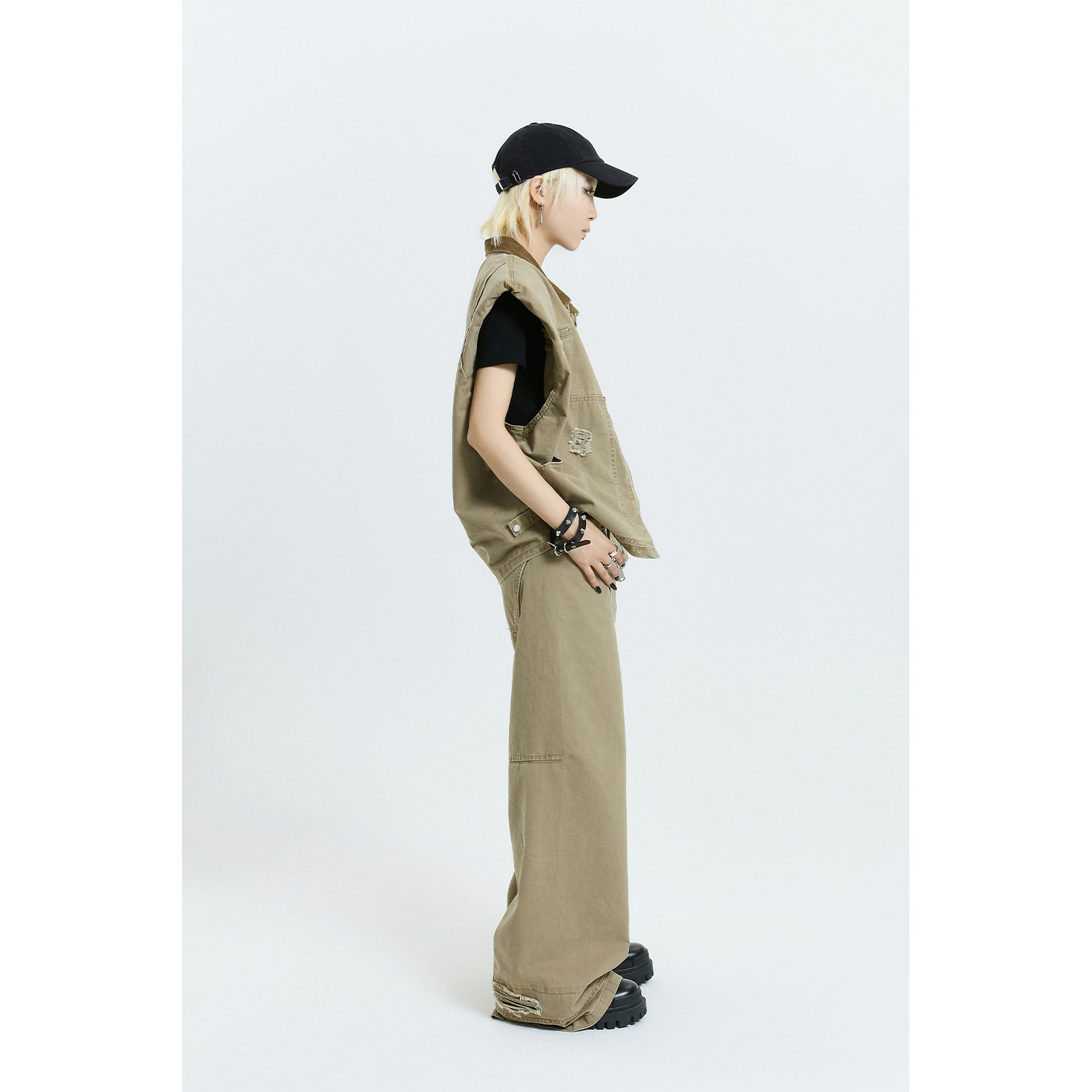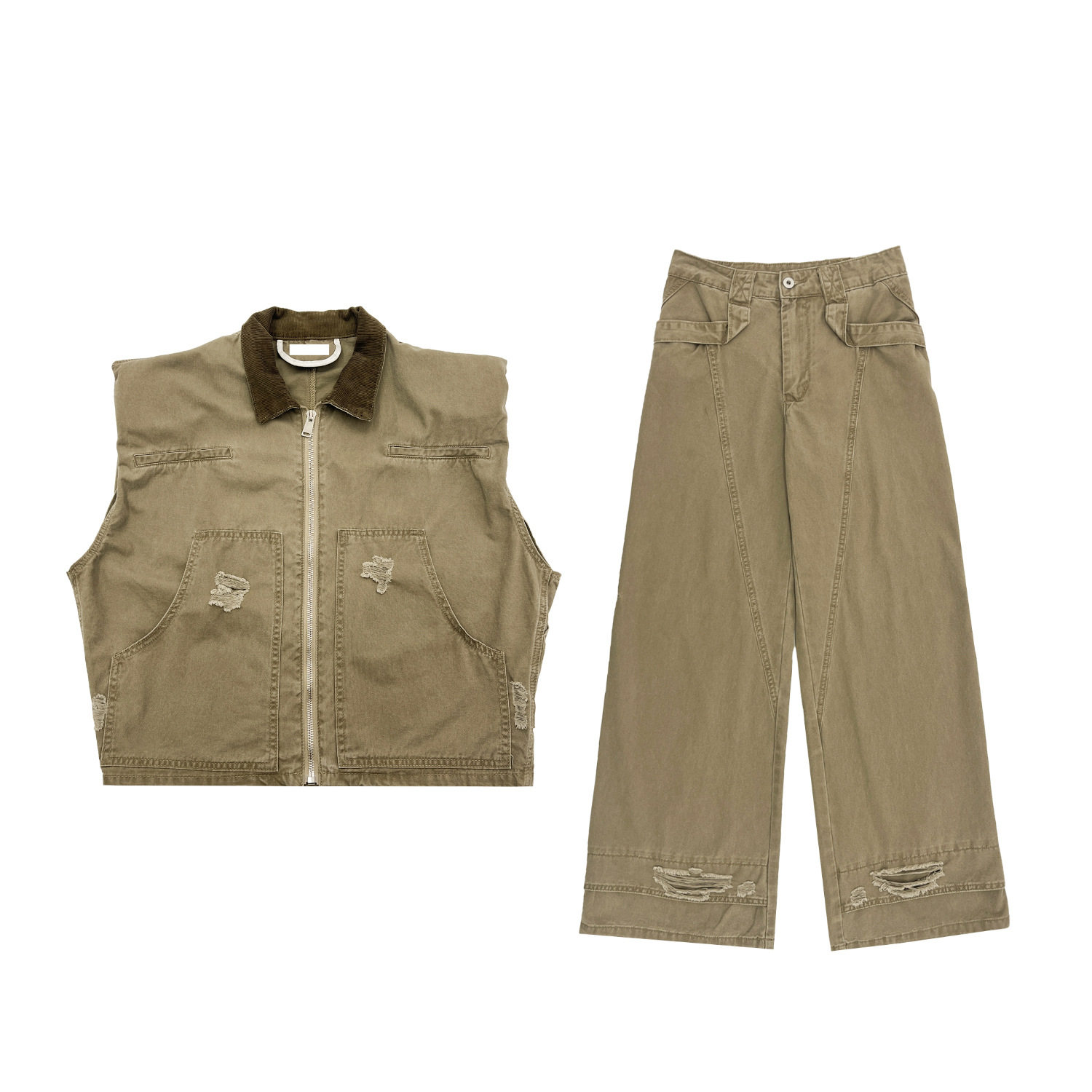 retro shoulder set女马甲套装 vest American worn Women pad