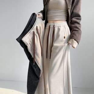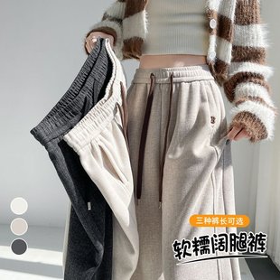 高腰垂感显瘦加绒加厚软糯阔腿裤 2025新款 子 女秋冬季 黑灰色糯米裤