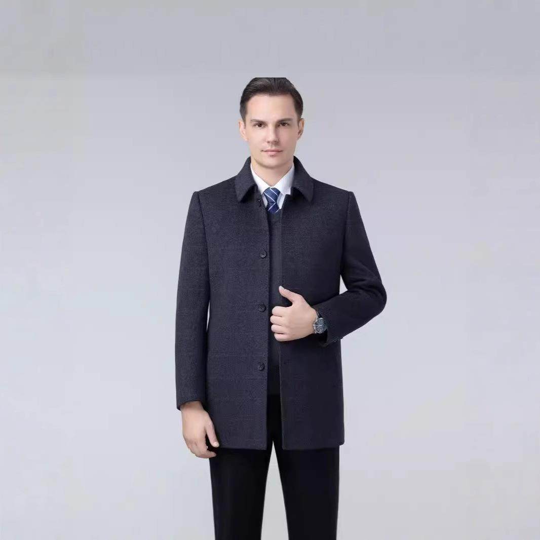 西装 过膝双面羊绒外套 领毛呢子风衣 中长款 纯羊毛双面呢大衣男士