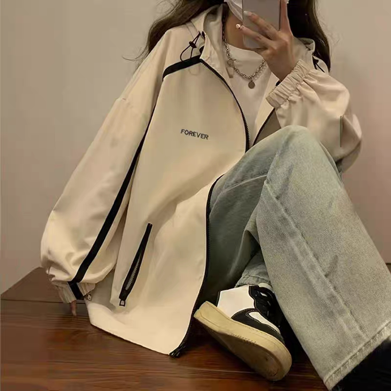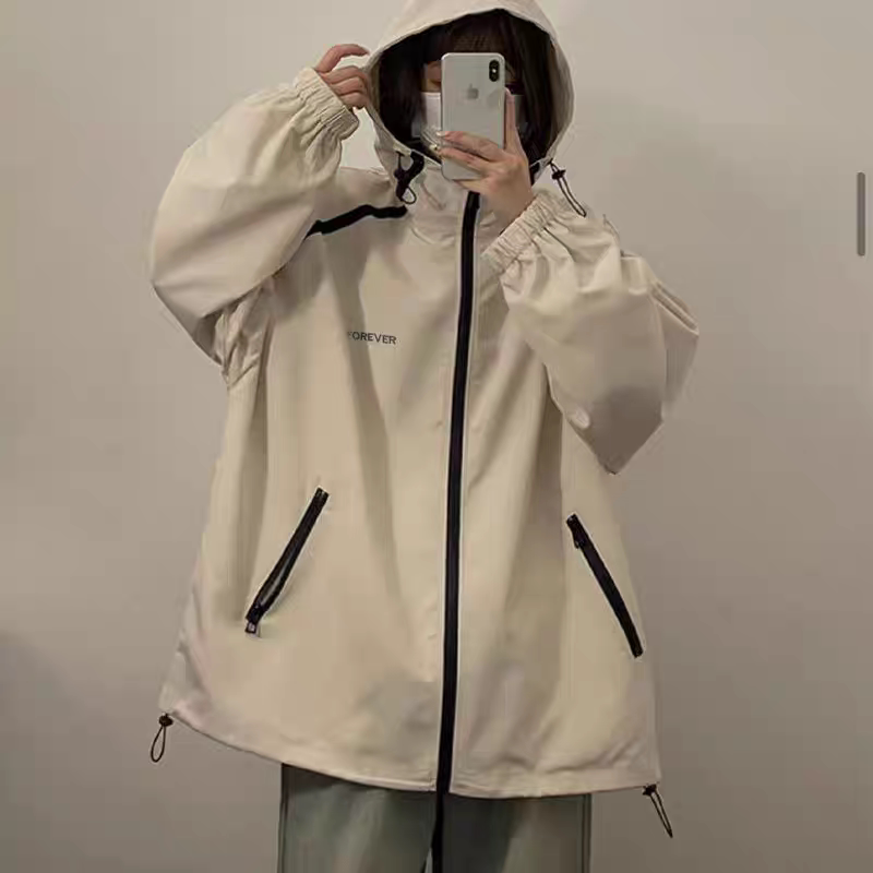 美式 宽松休闲薄款 户外防风夹克上衣潮 运动冲锋衣新款 外套女春秋款