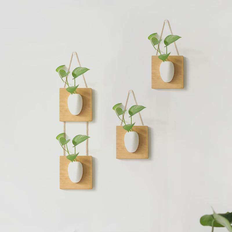 9WOR墙面装 饰墙挂水培墙壁挂件花瓶书房餐厅壁挂插花器原木风墙挂