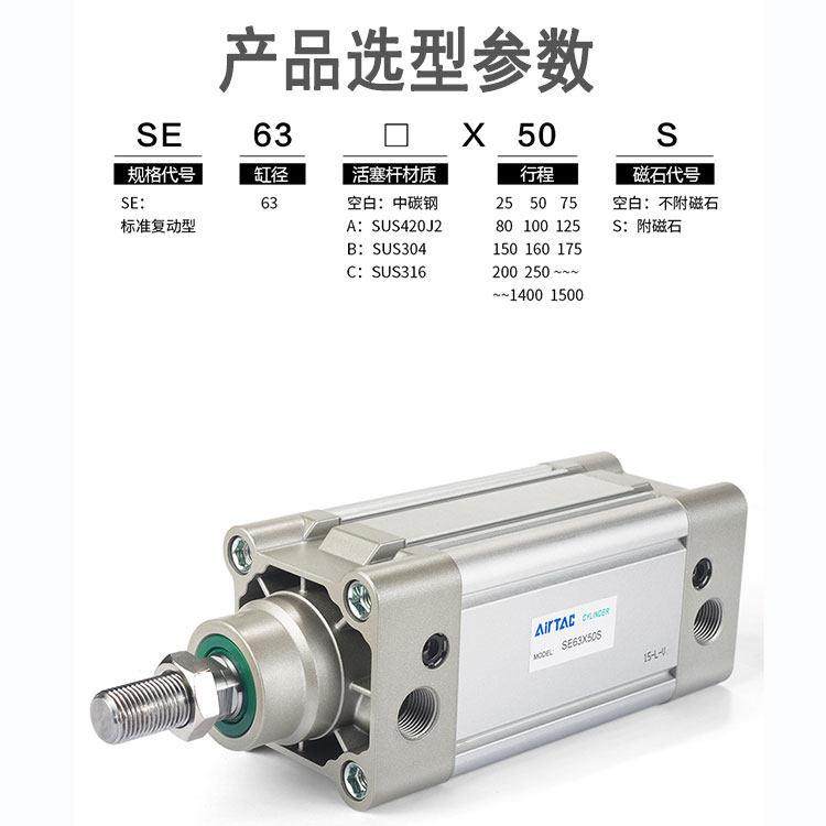亚德客型标准气缸SEJ SE125X25SX50X75X100X125X150X175X200X500S