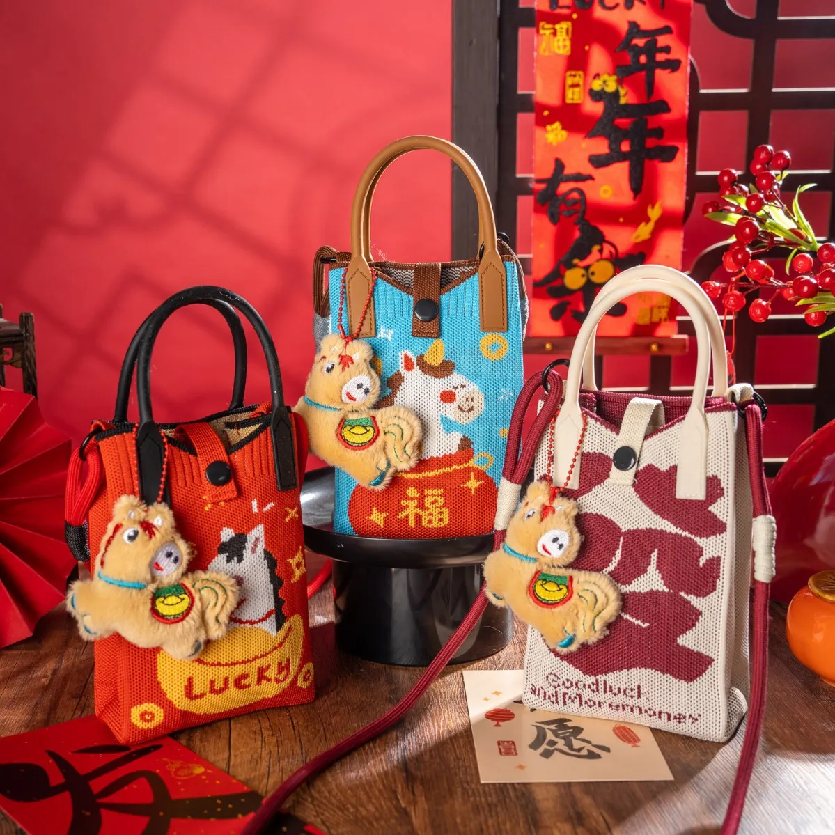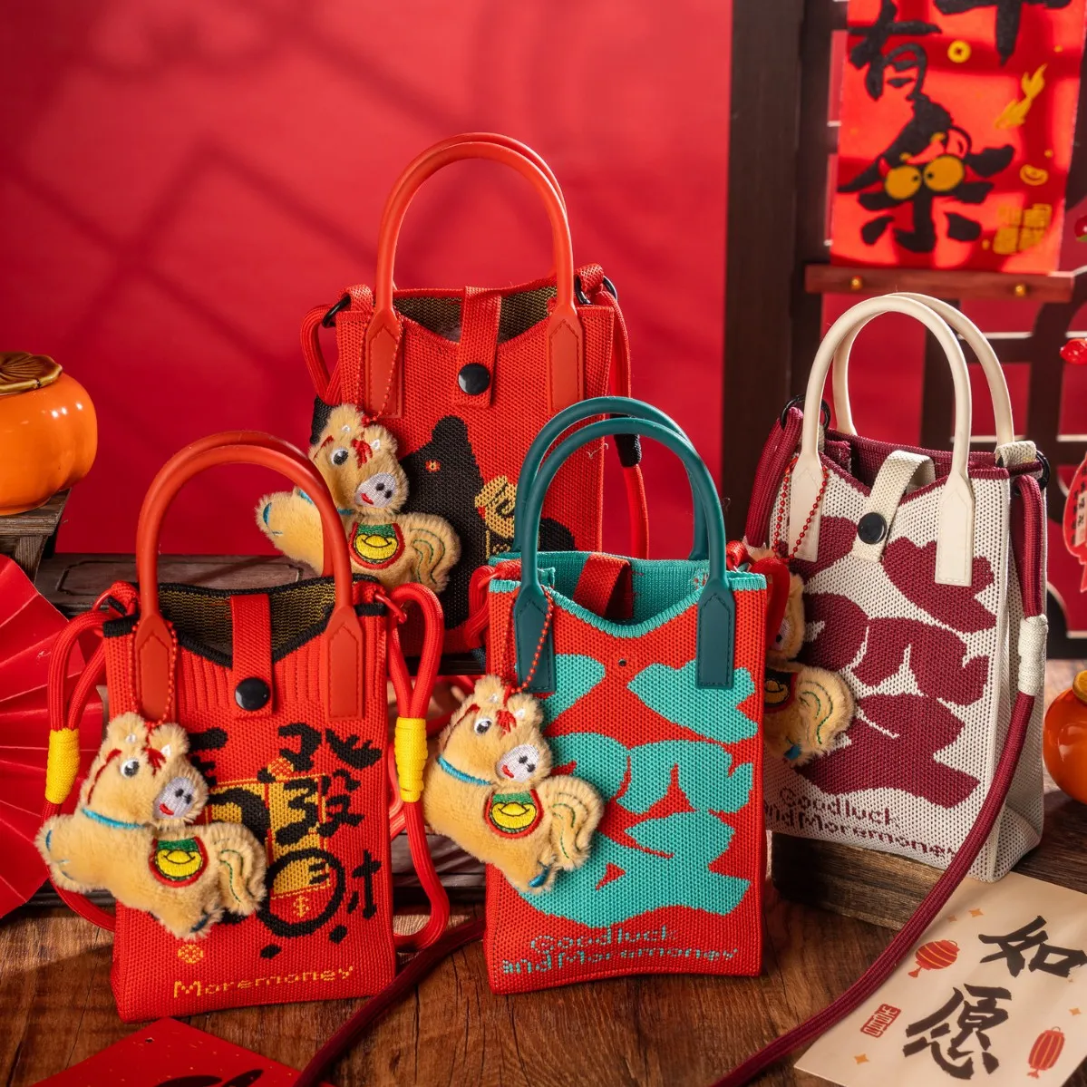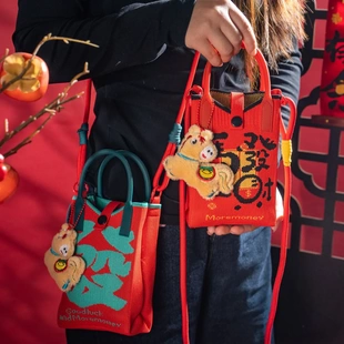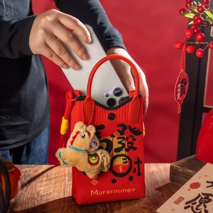 马年新款 2026针织迷你手机包春节公司年会礼物喜庆發字编织斜挎包