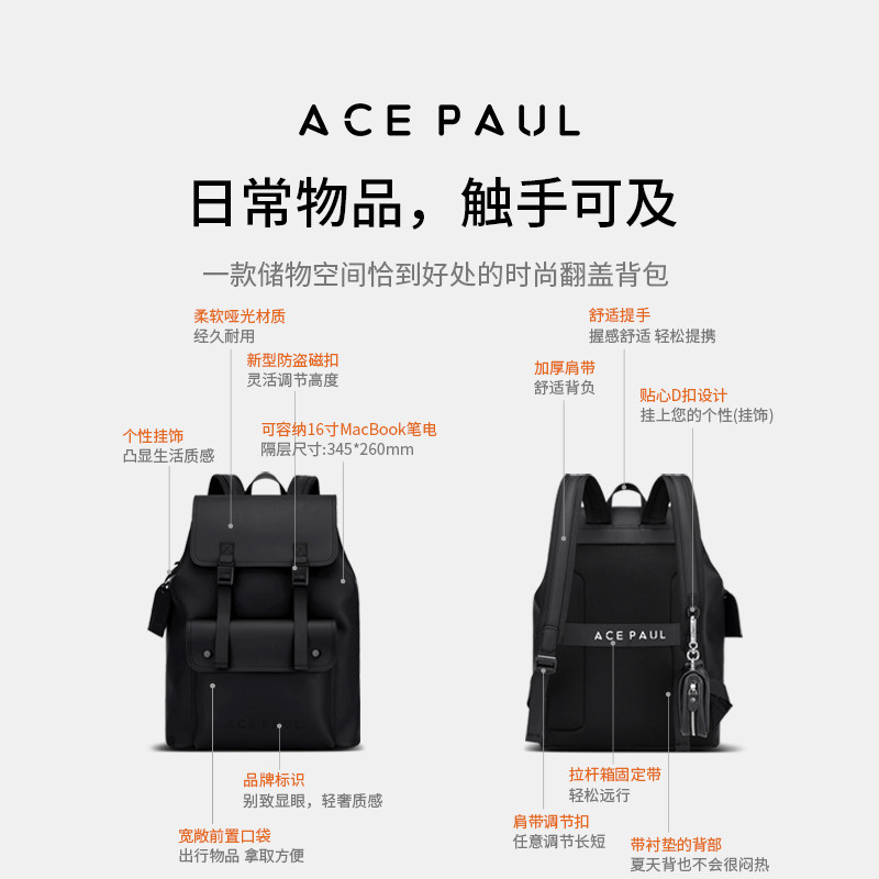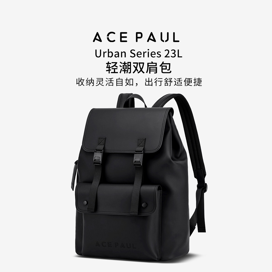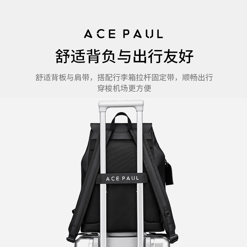 Ace Paul皮质双肩背包男大容量17英寸电脑包户外防水旅行通勤包男