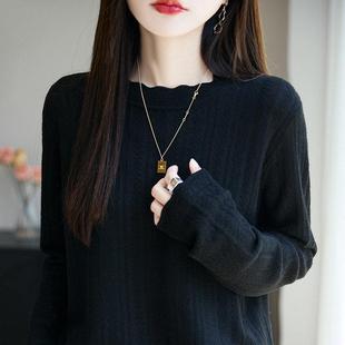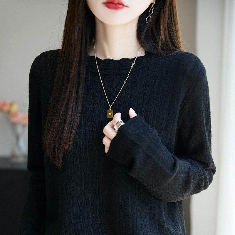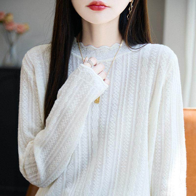 蕾丝内搭高领木耳边针织衫 薄款 中领薄1219e 女秋冬新款 白色打底衫