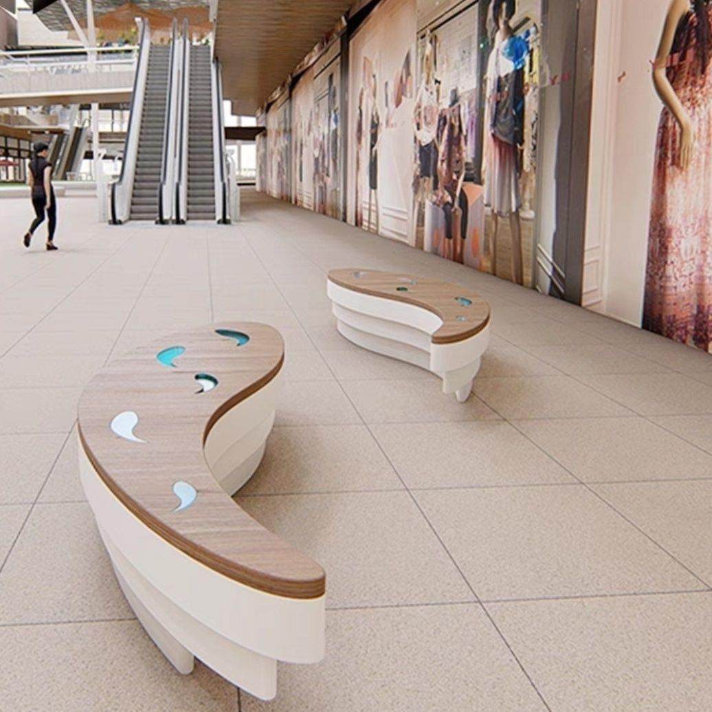 商场座椅玻璃钢椭圆茶几沙发组合简约时尚 公共休闲椅系列单人座凳