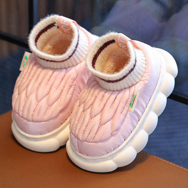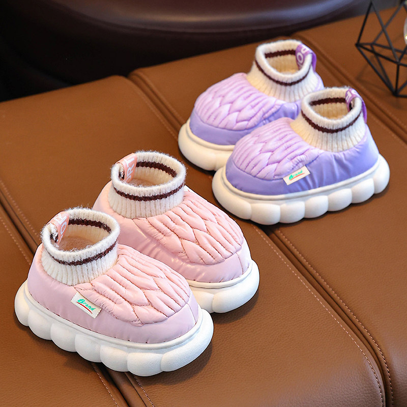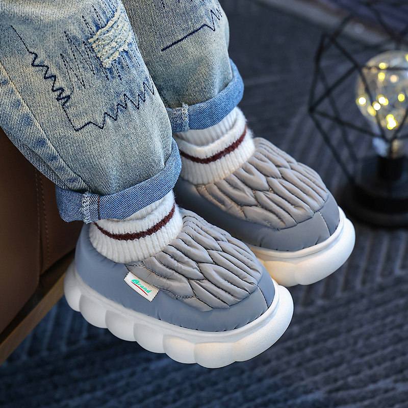 女 加厚底防滑居家室内外魔术贴居家保暖棉拖鞋 冬季 牛筋底男童棉鞋