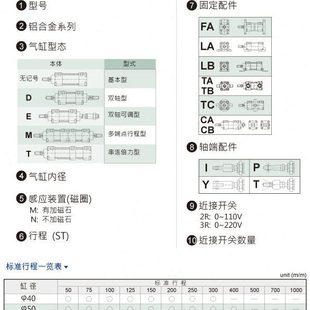 sc气缸小型气动气缸大推力可调行程气缸大全SCJ40X50X63X80X100