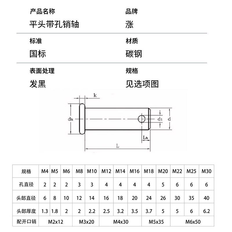 速发G2882黑色平头带孔销轴圆柱带孔销钉插销销05M6M8M1MM12 MB0