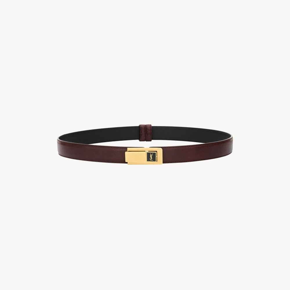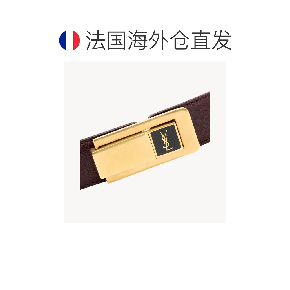自营欧洲直邮YSL圣罗兰 女士热酒色小牛皮logo标识腰带2.5cm