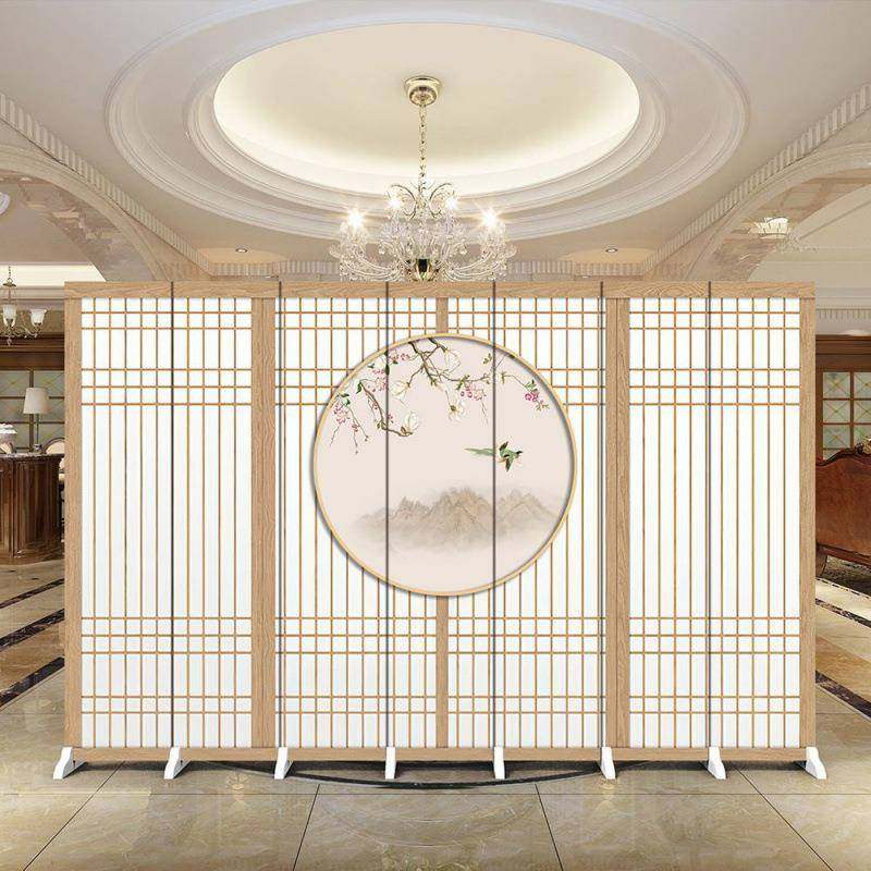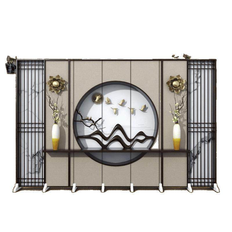 新中式 屏隔折断客厅遮挡酒店卧室办JEZ公室简约家风用折屏移可动
