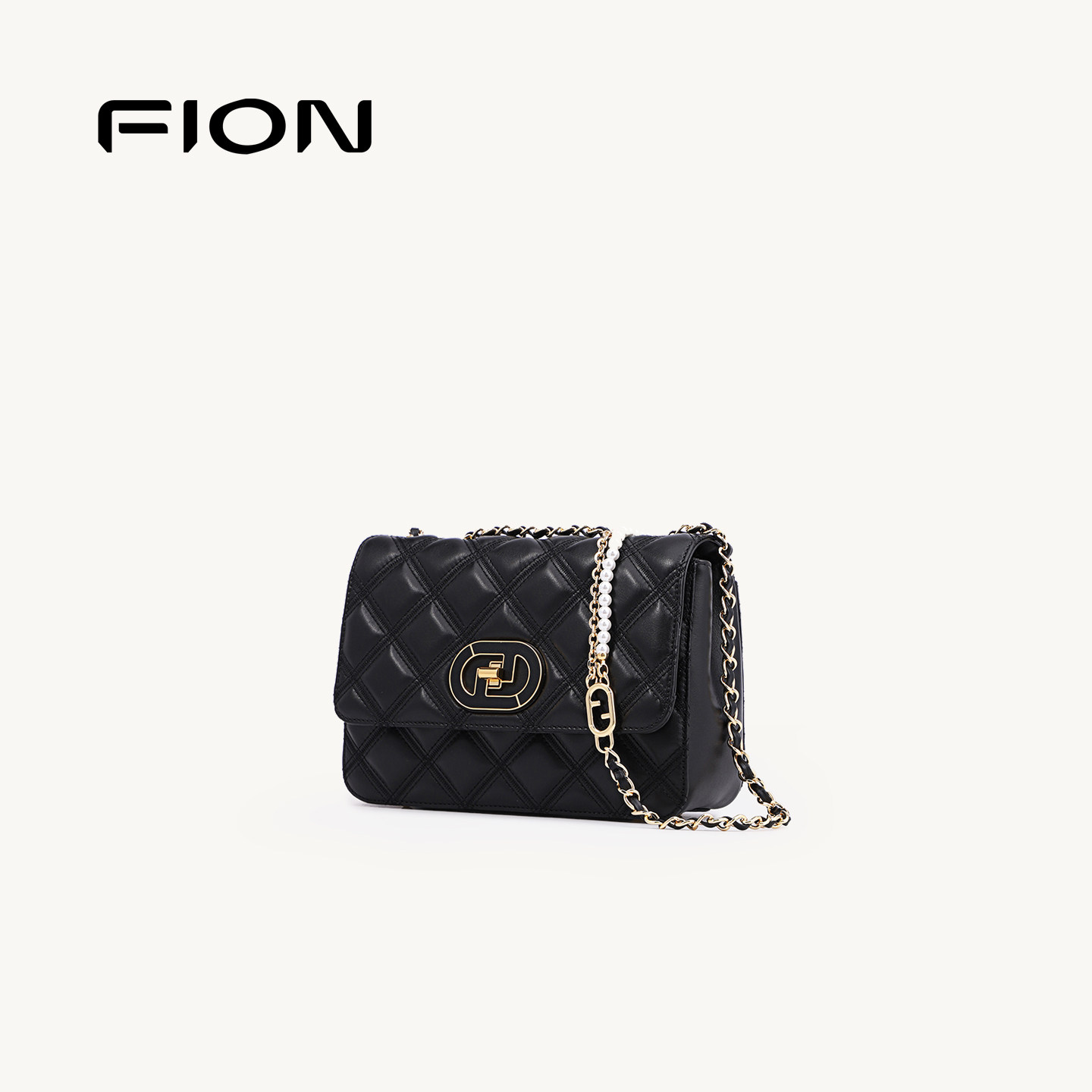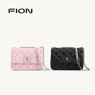 Fion 真皮菱格纹盒子包轻奢单肩斜挎链条包 菲安妮女包小方包新款