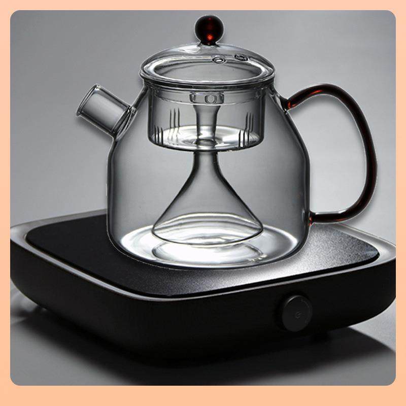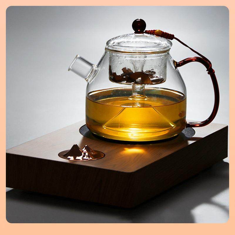 9QXC电陶炉茶炉玻璃蒸汽煮茶器黑茶煮茶壶普洱茶具套装 烧水蒸茶壶