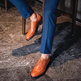 头层牛皮手工实木跟英伦新郎德比鞋 2026春新潮款 男式 皮鞋 商务正装
