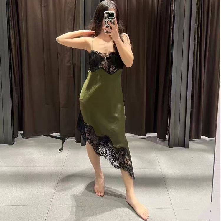 4772113 春季 不对称裙摆蕾丝拼接缎面连衣裙丝缎裙 女装 099 新品