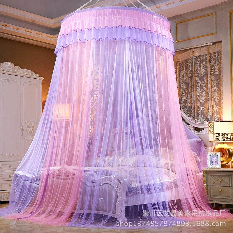 家纺吊挂圆顶公主蚊帐免安装 铁丝落地蚊帐1.2成人 床幔欧式