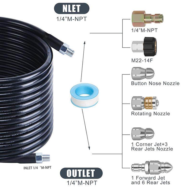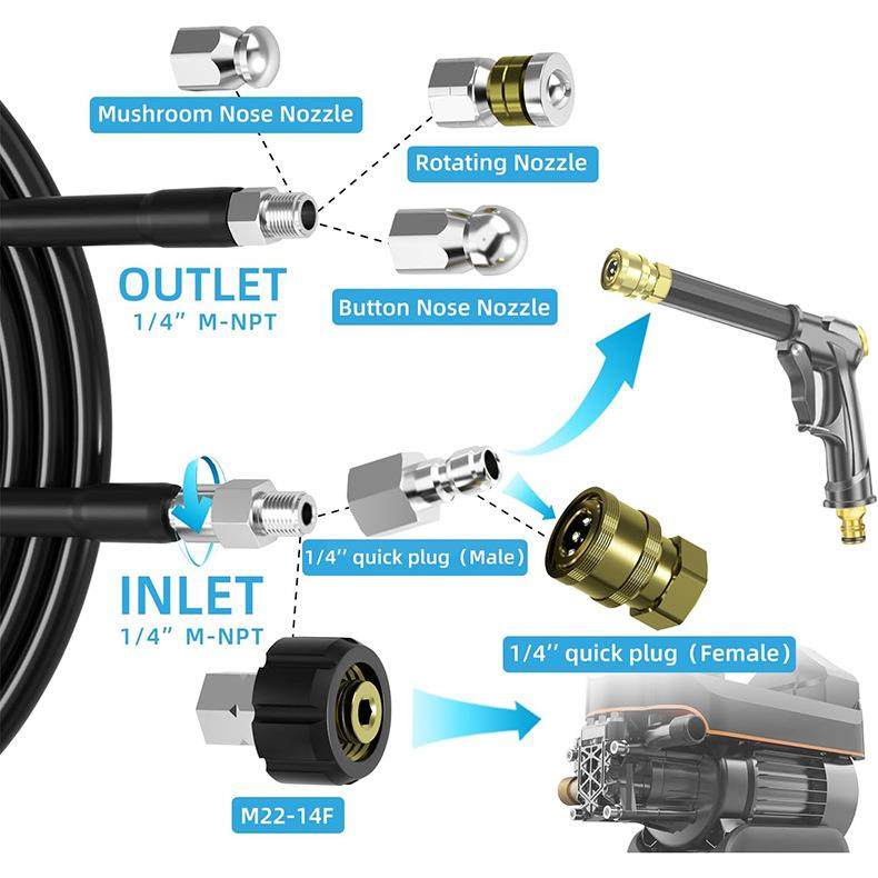 清洗高压胶管道市政疏通管下水道水老鼠冲洗器套件m22 4排水喷