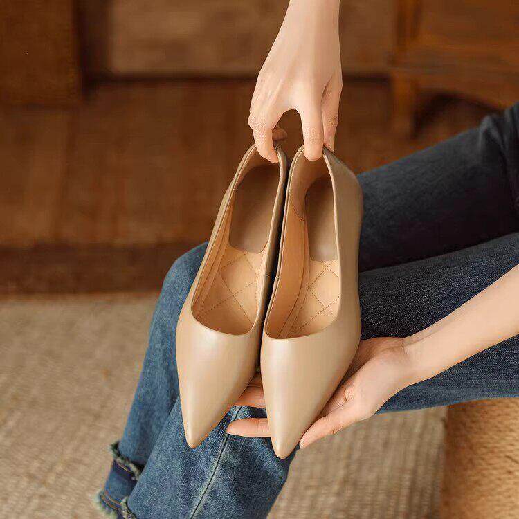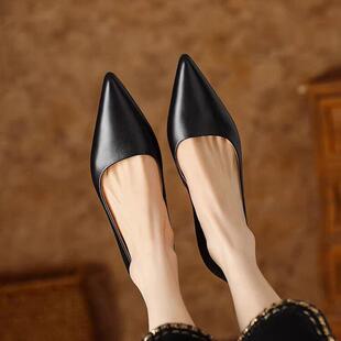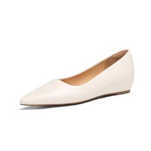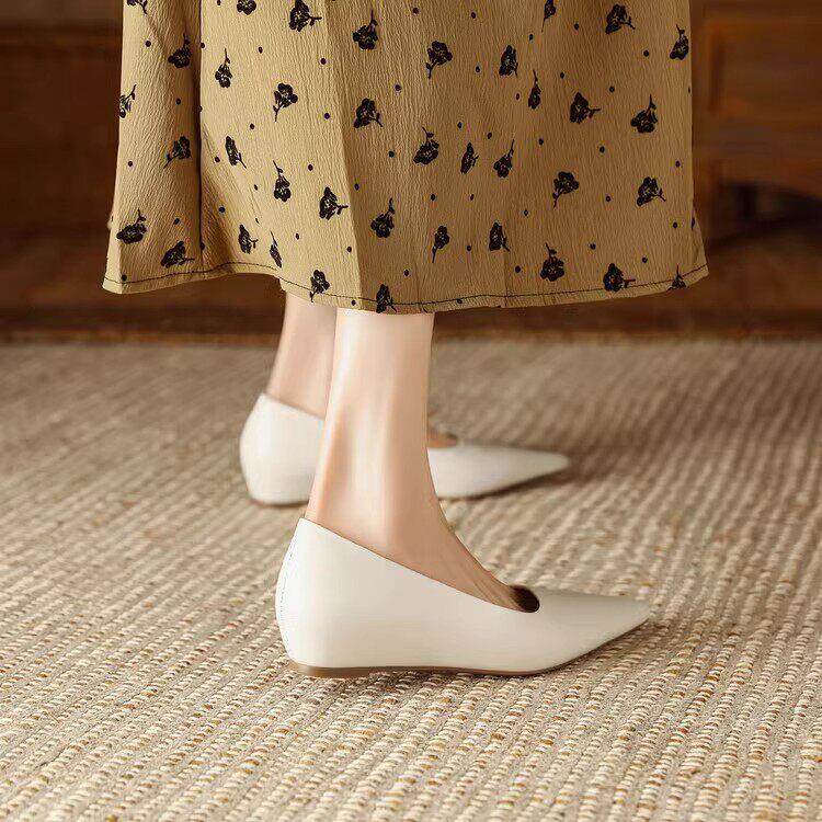 通勤坡跟工作鞋 内增高3cm百搭白色平底鞋 女春秋新款 浅口尖头单鞋