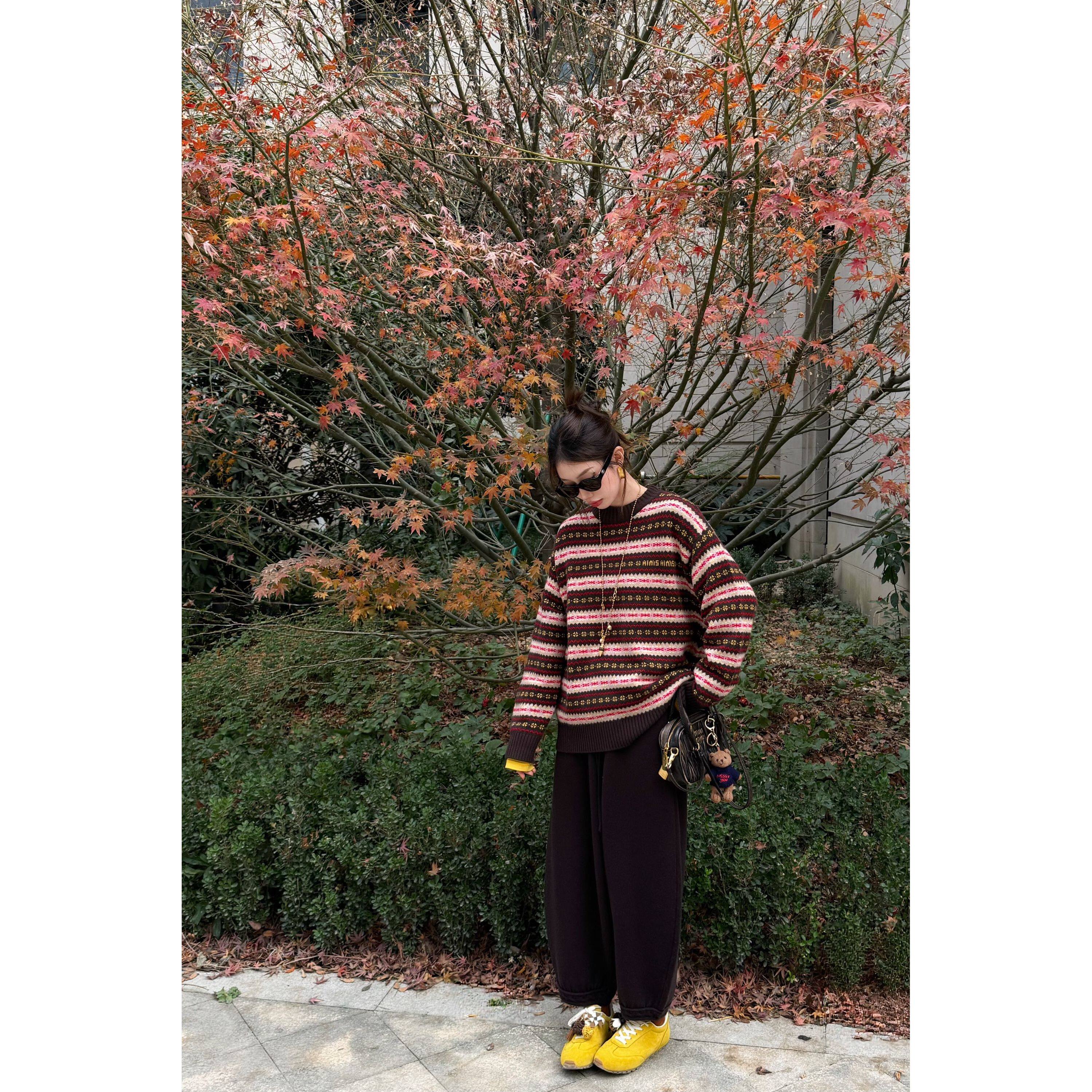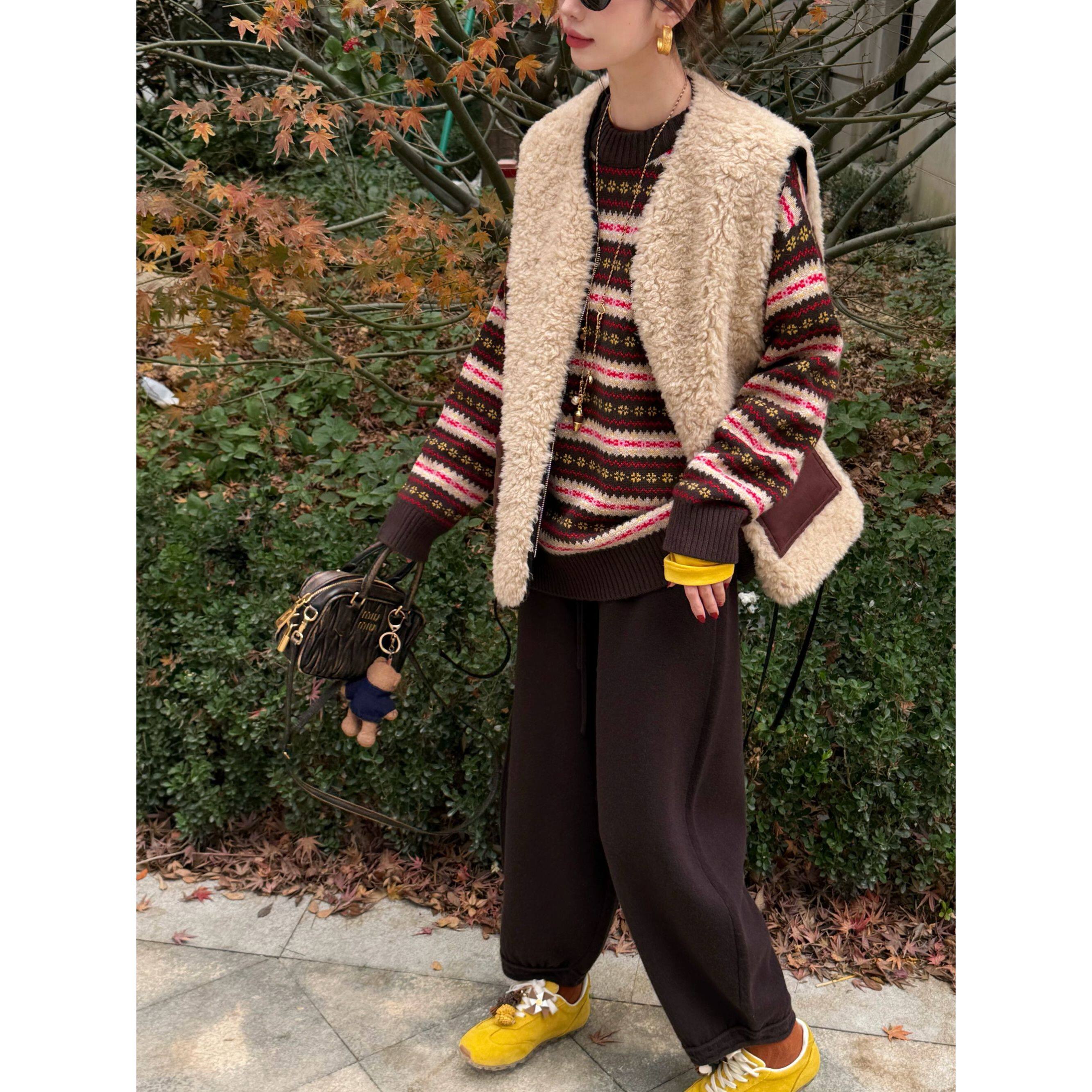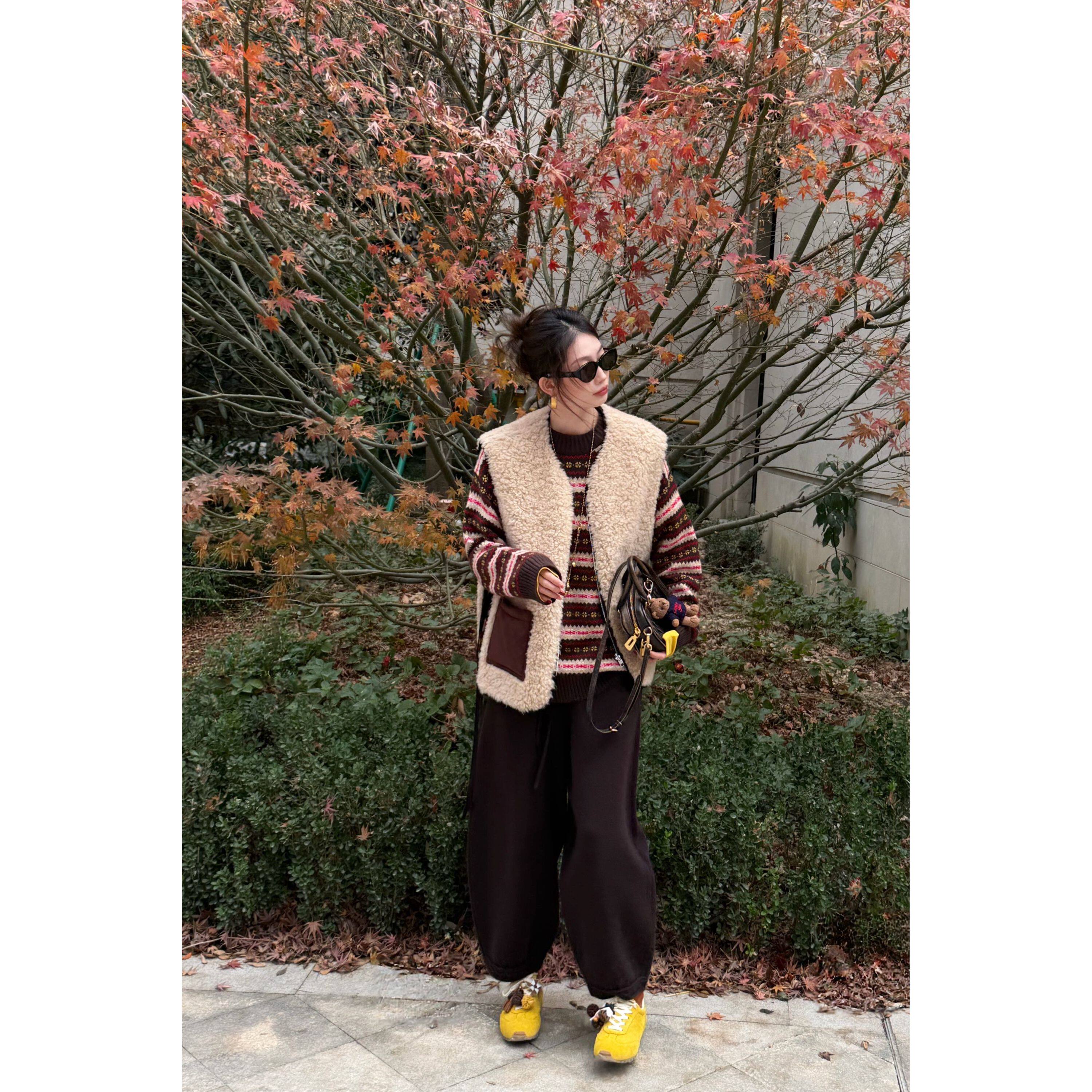 Emily精选 858398 咖啡色气球羊绒裤
