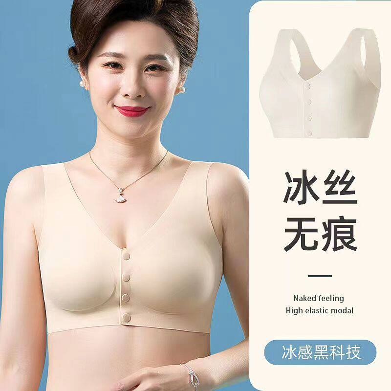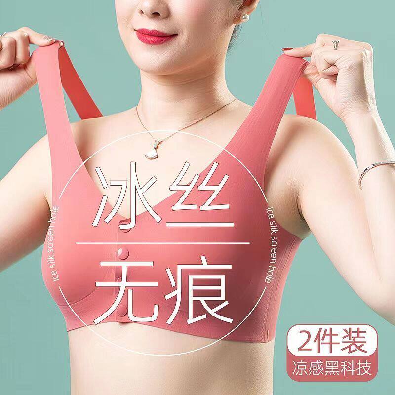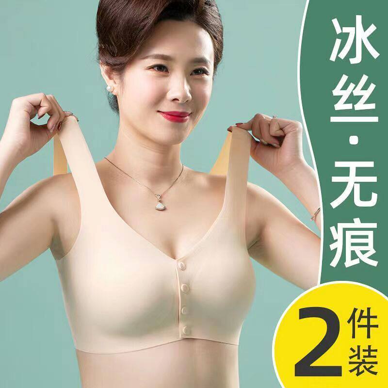中老年前扣胸罩大杯冰丝无痕内衣女妈妈美背心性感无钢圈文胸薄款