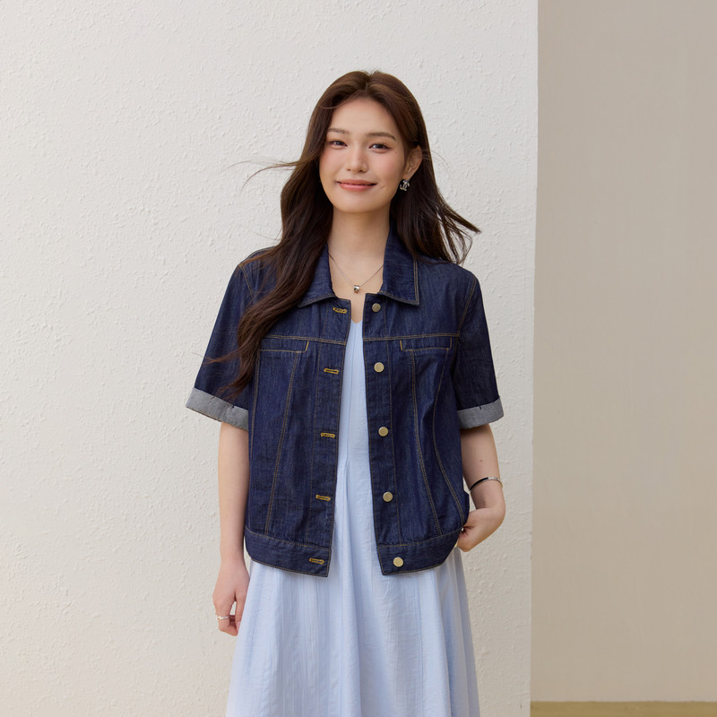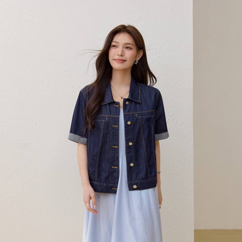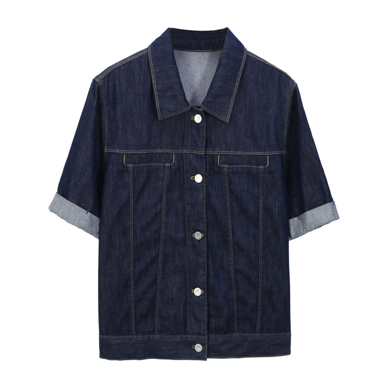 百搭牛仔外套 胖mm夏装 纤莉秀大码 复古深蓝色时髦开衫 新款 女装