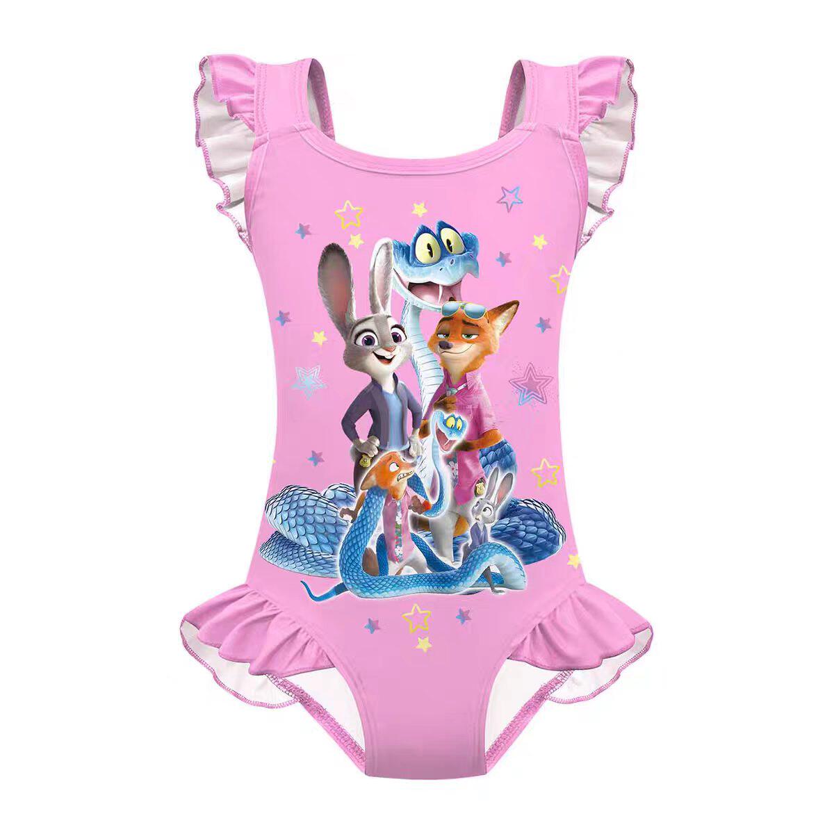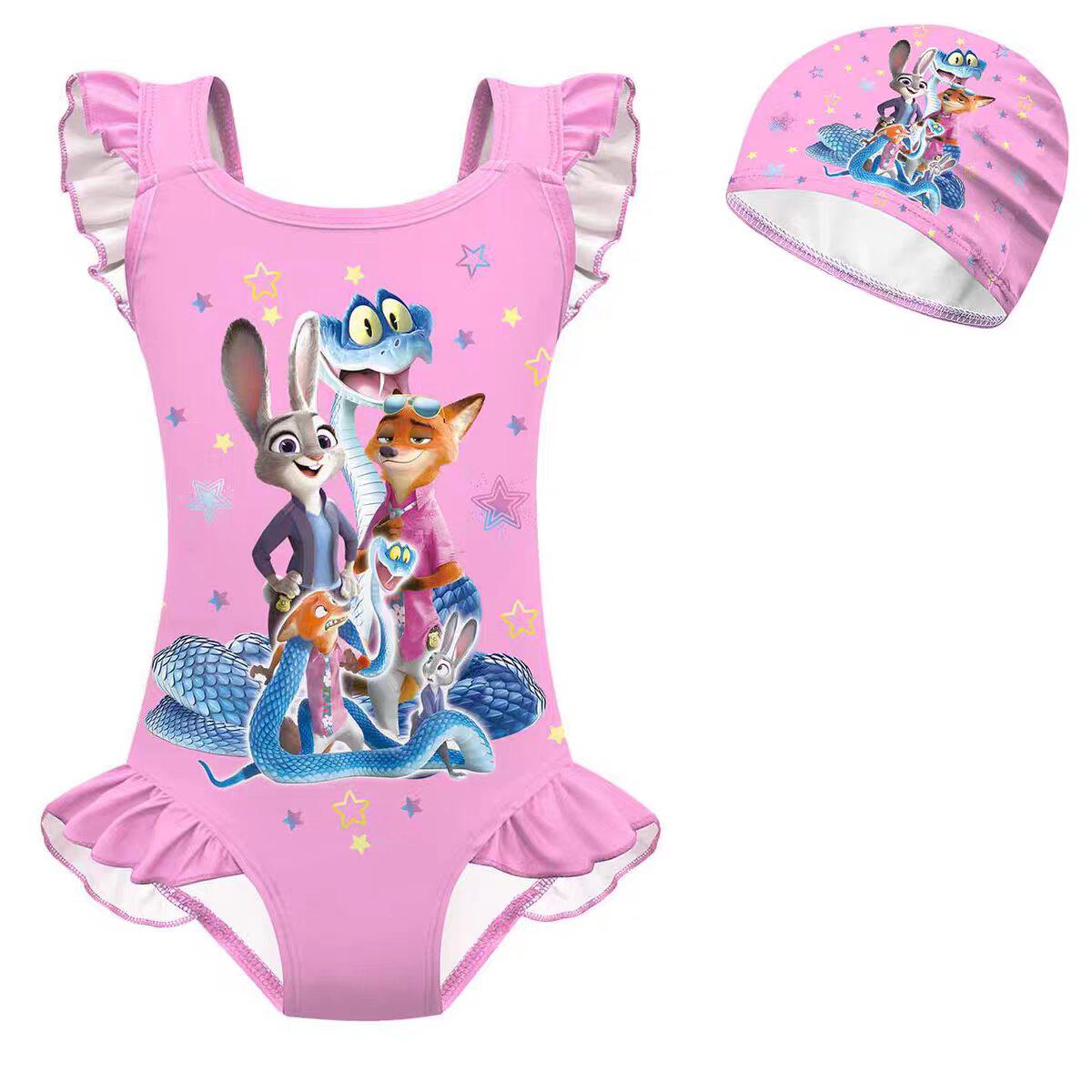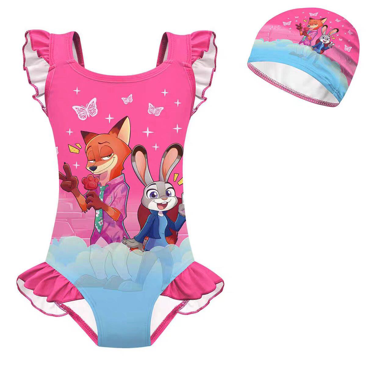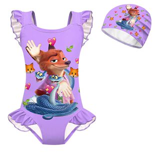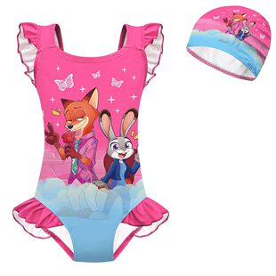 2女童连体花边度假泳衣泳帽 儿童泳衣疯狂动物城Zootopia 夏季 新款