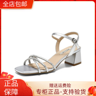 F6Z2 国内专柜正品 细钻粗高跟女凉鞋 百丽一字带凉鞋 F6Z2D 2026夏款