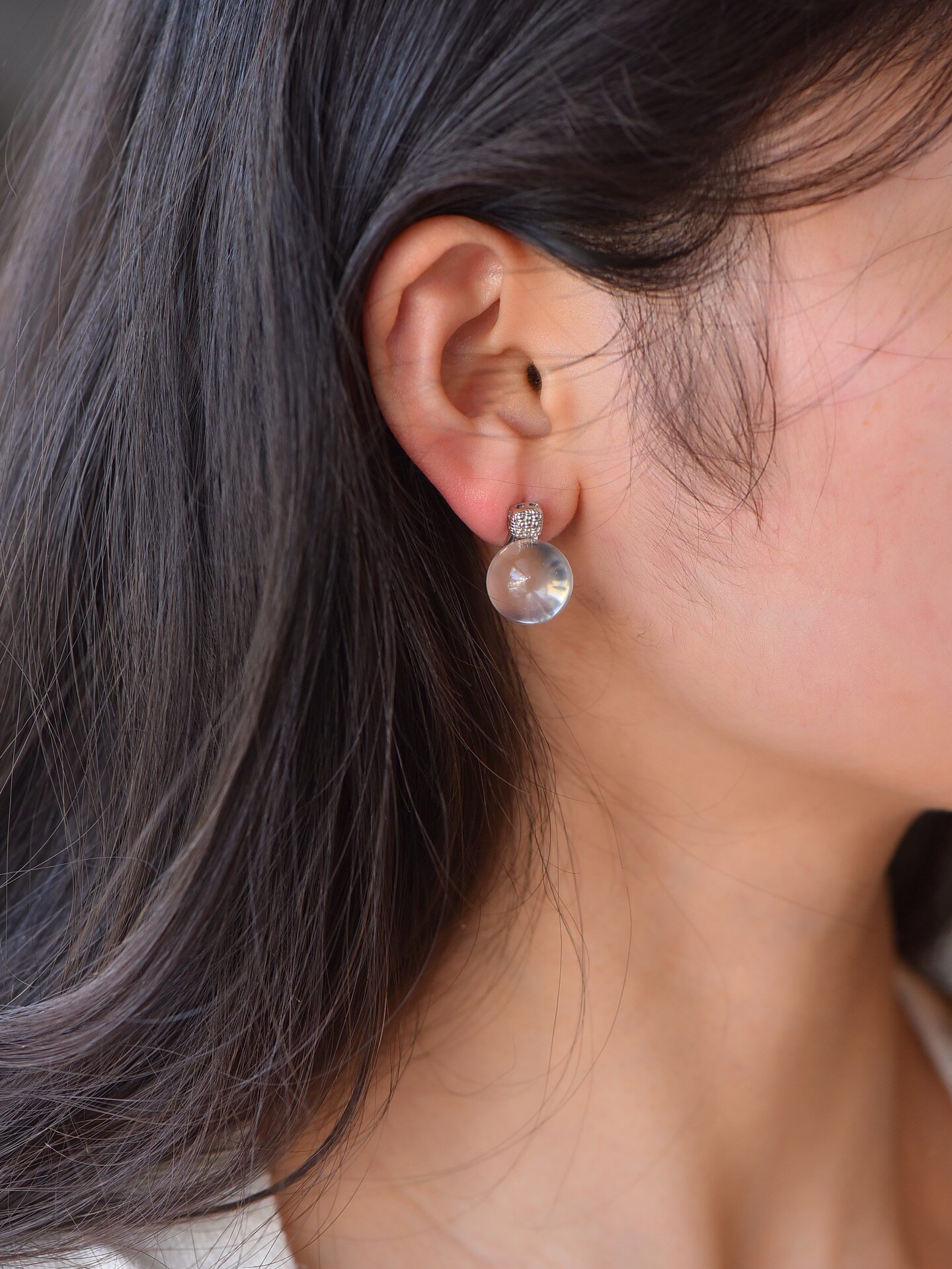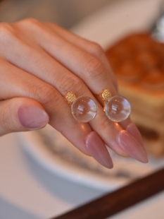天然白水晶高透纯净圆珠耳钉925银色金色几何网格纹耳饰女士礼物