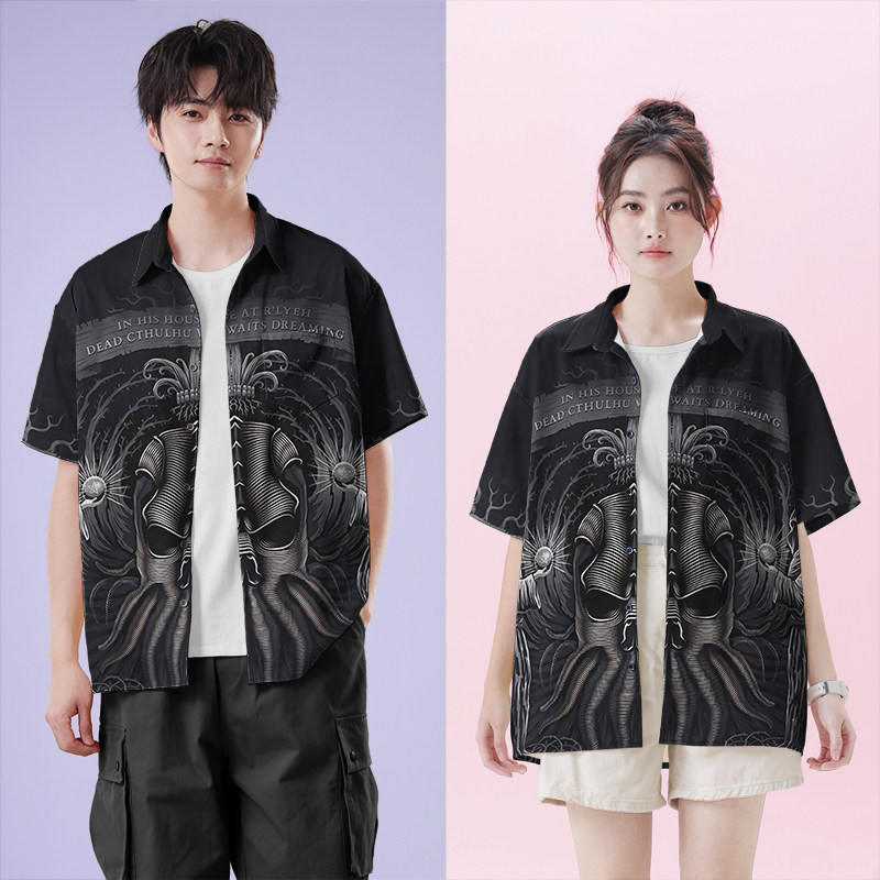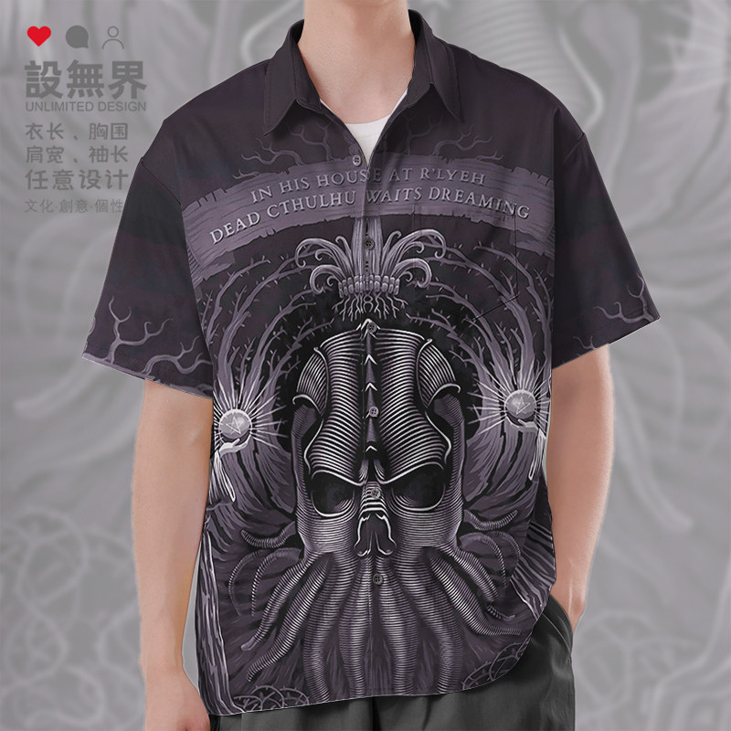 0015设 克苏鲁神话拉莱耶之主旧日支配者大码 男女装 衬衫 无界 短袖