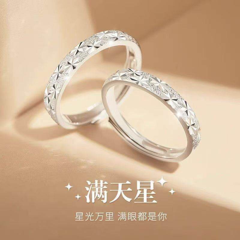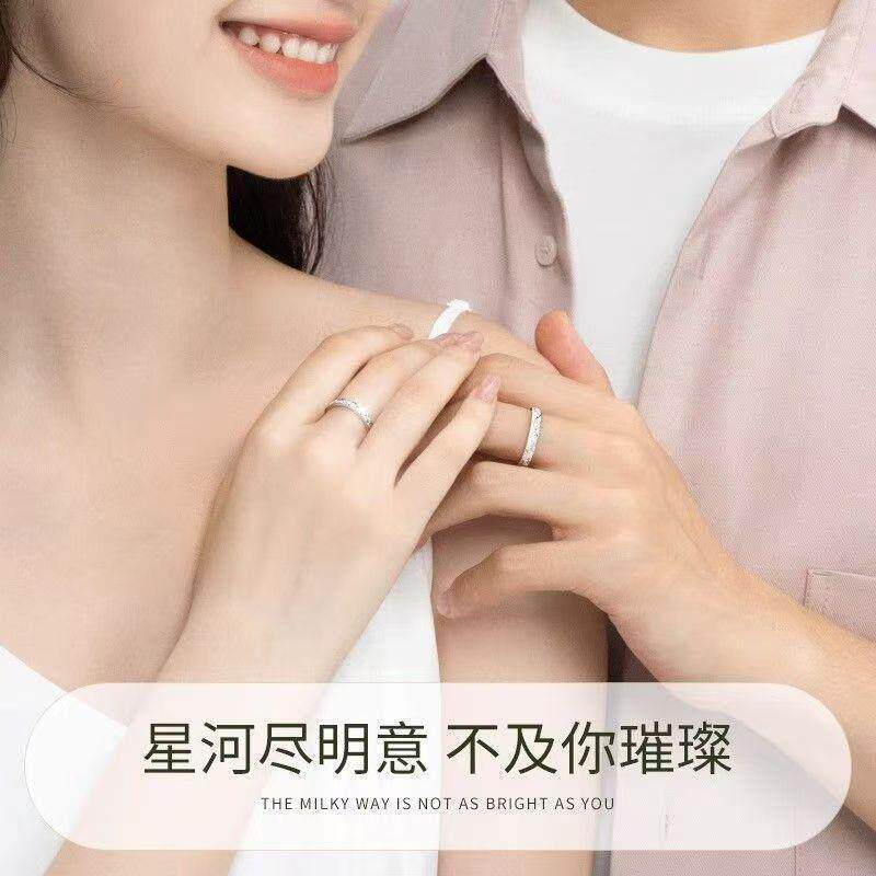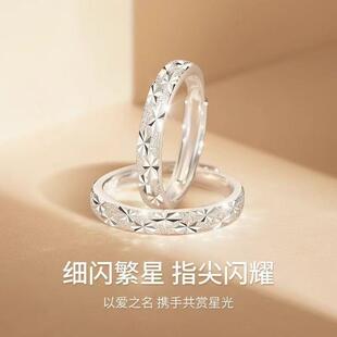 满天星渡银白色情侣对戒男女款 轻奢情侣戒指素圈送爱人情人节礼物