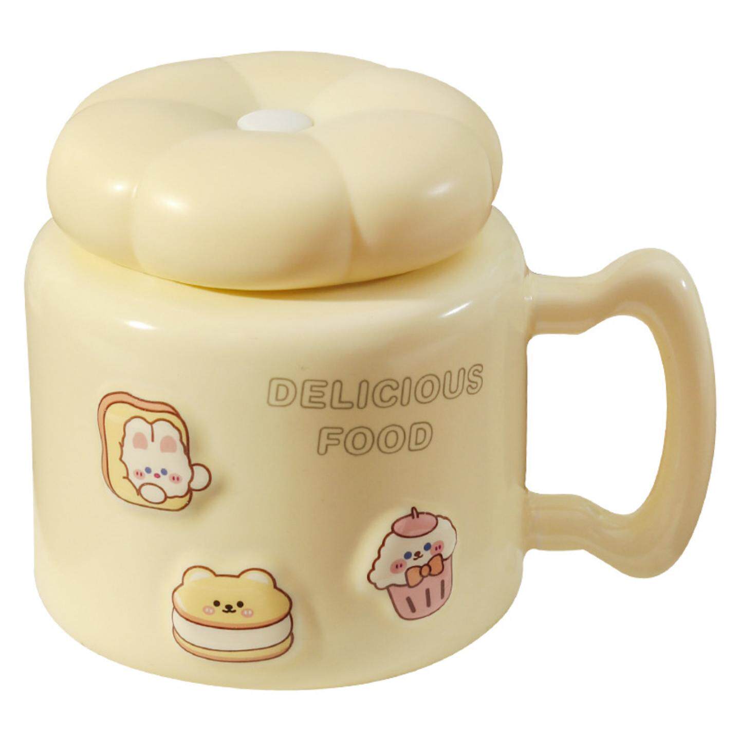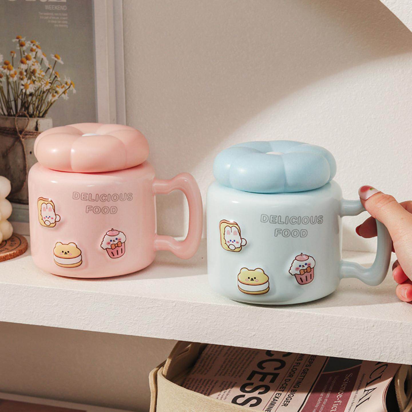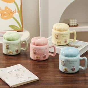 卡通陶瓷镜面杯高颜值马克杯带盖家居大容量水杯办公室茶杯咖啡杯