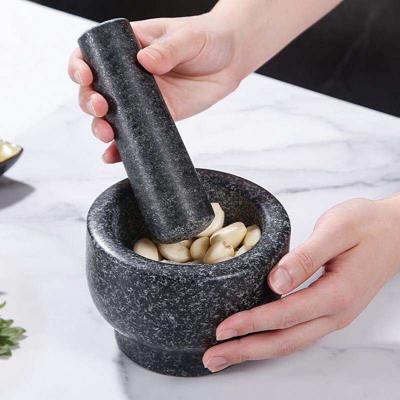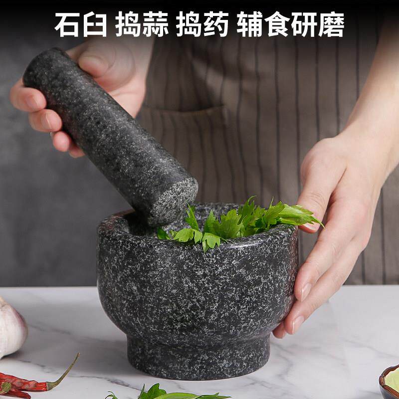 老式 石臼压蒜器石盅花岗岩蒜臼子手动擂钵蒜泥中药副食品副食品研