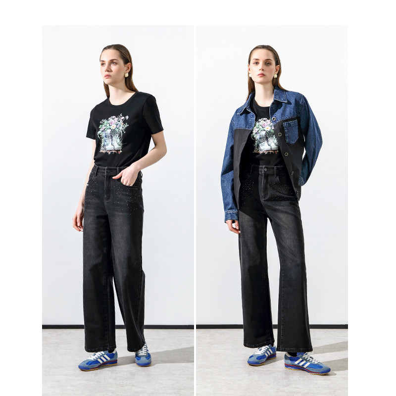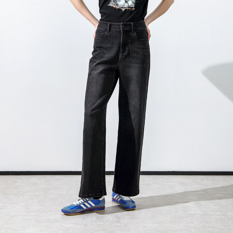 百搭休闲裤 Keywearcloud奇威2025新款 长裤 直筒裤 女 精致烫钻牛仔裤
