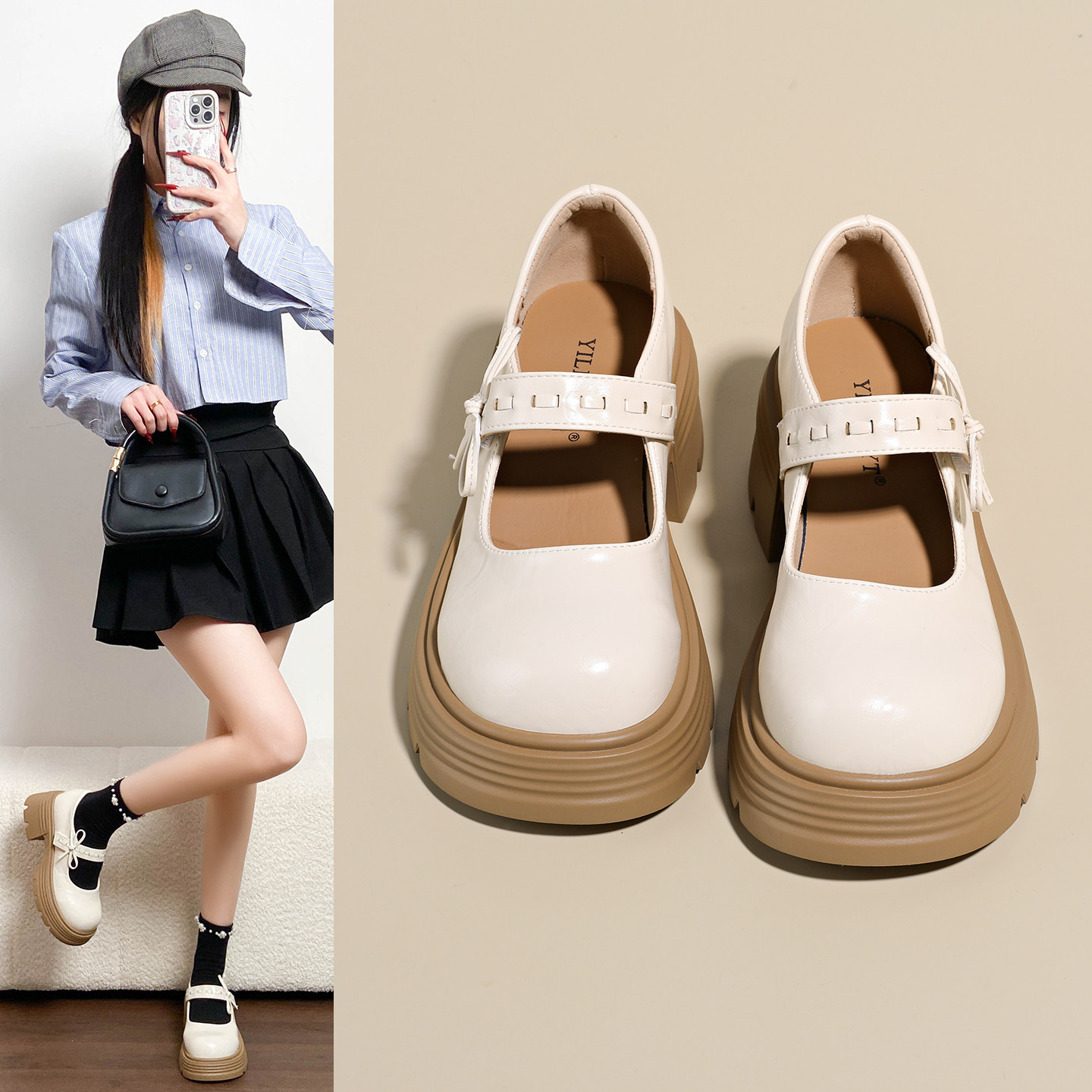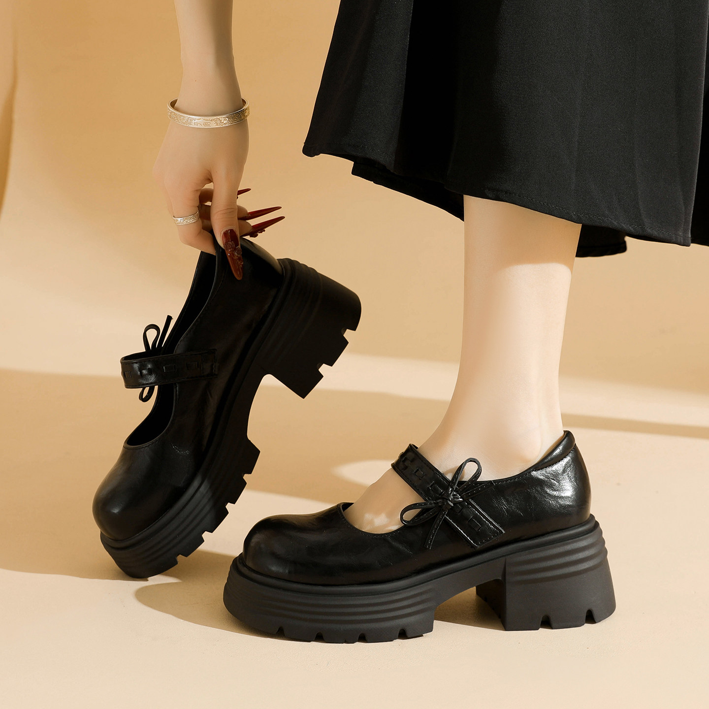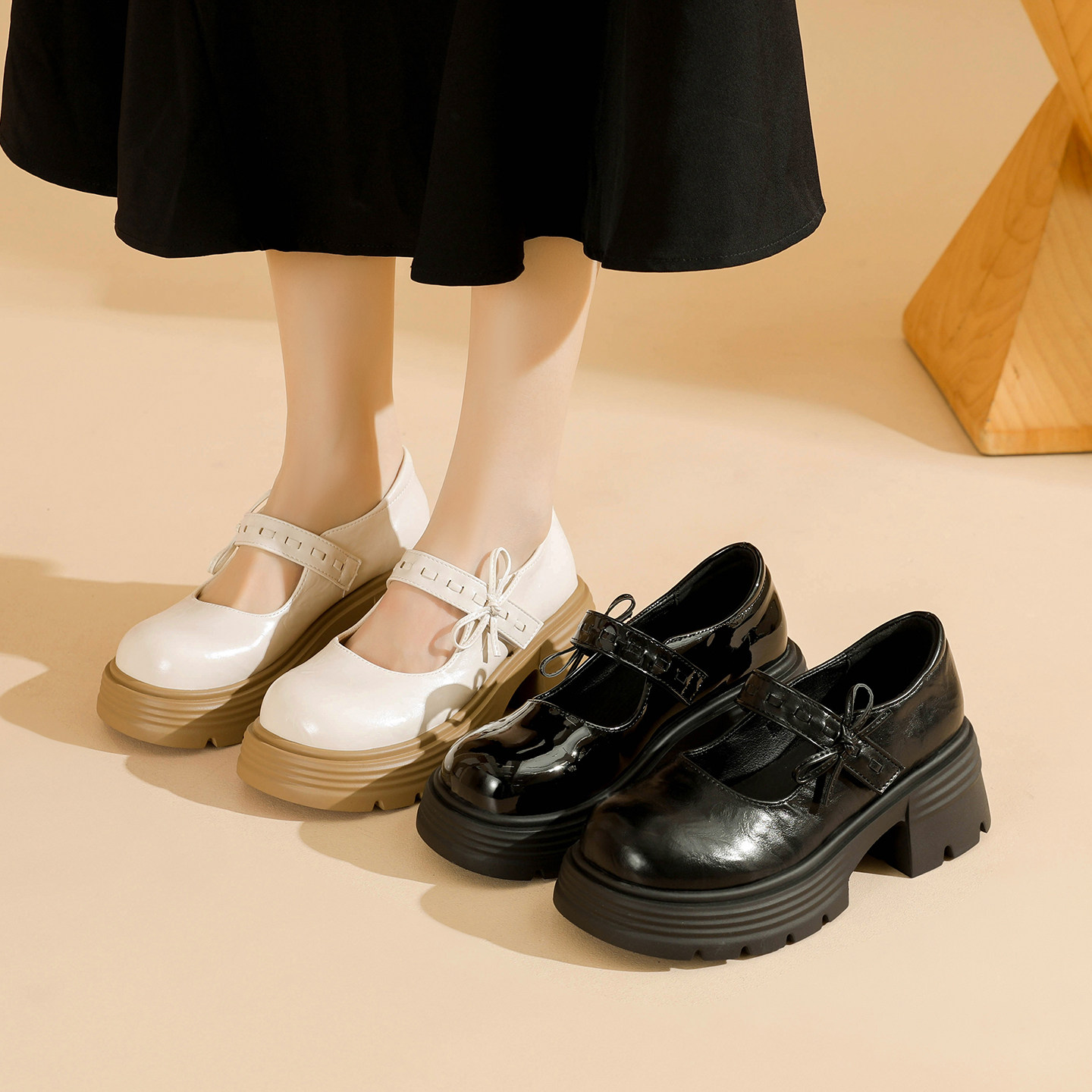 不累脚一脚蹬厚底单鞋 百搭蝴蝶结英伦风小皮鞋 2026新款 玛丽珍女鞋