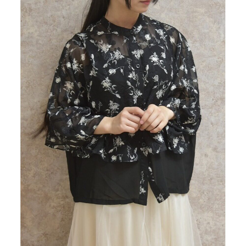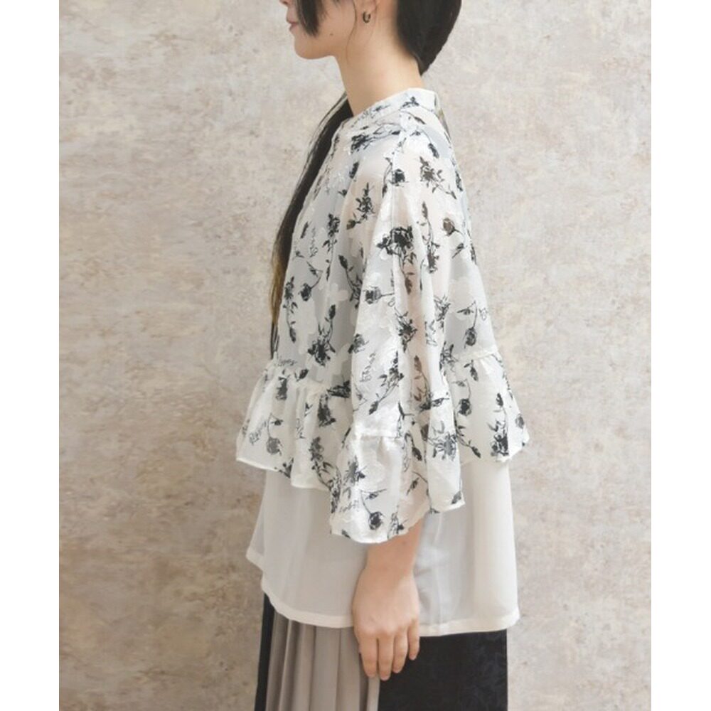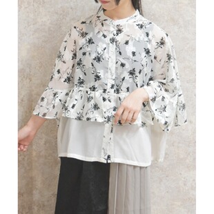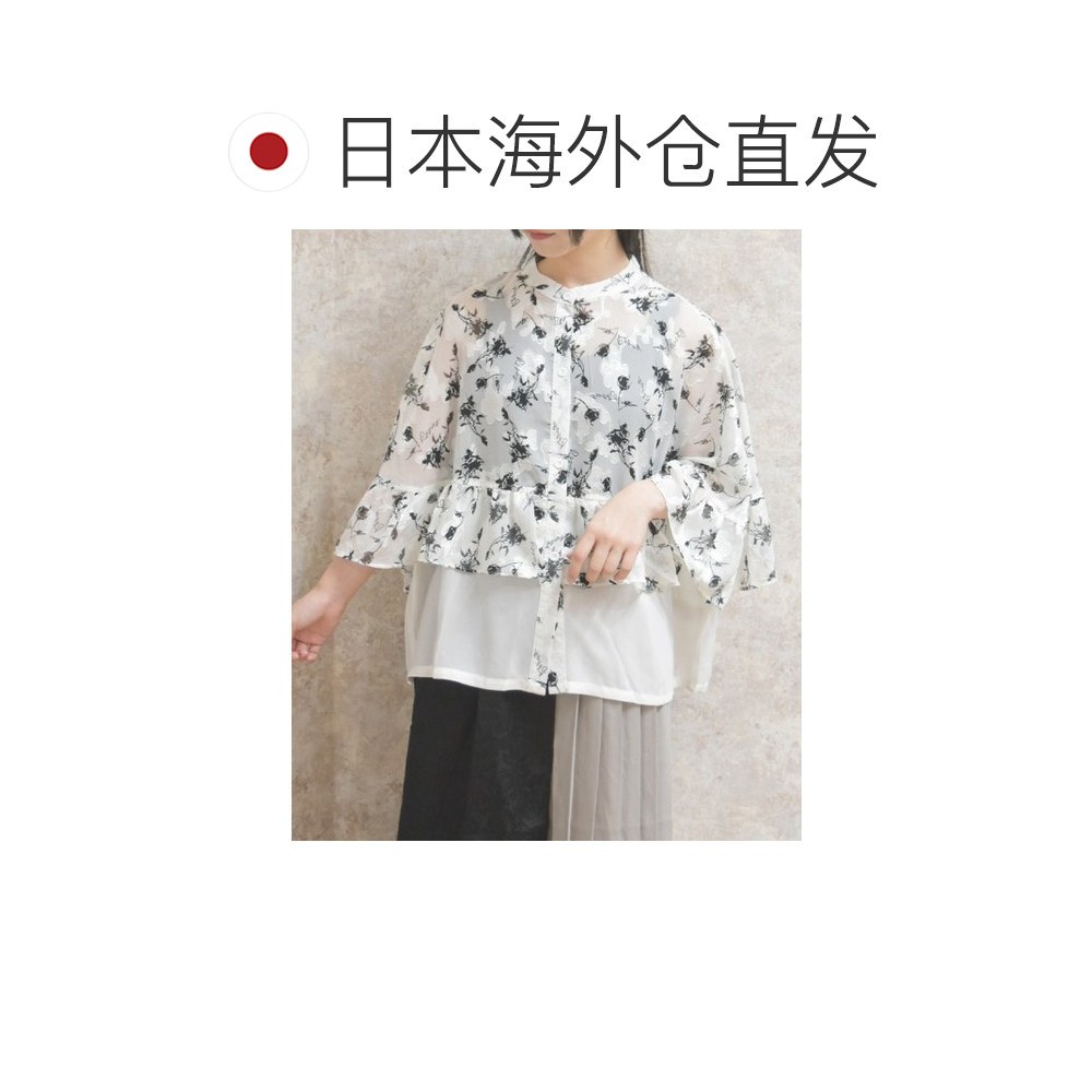 荷叶边设计 日本直邮axes 花纹拼接轻盈雪纺衬衫 女装 女性 femme