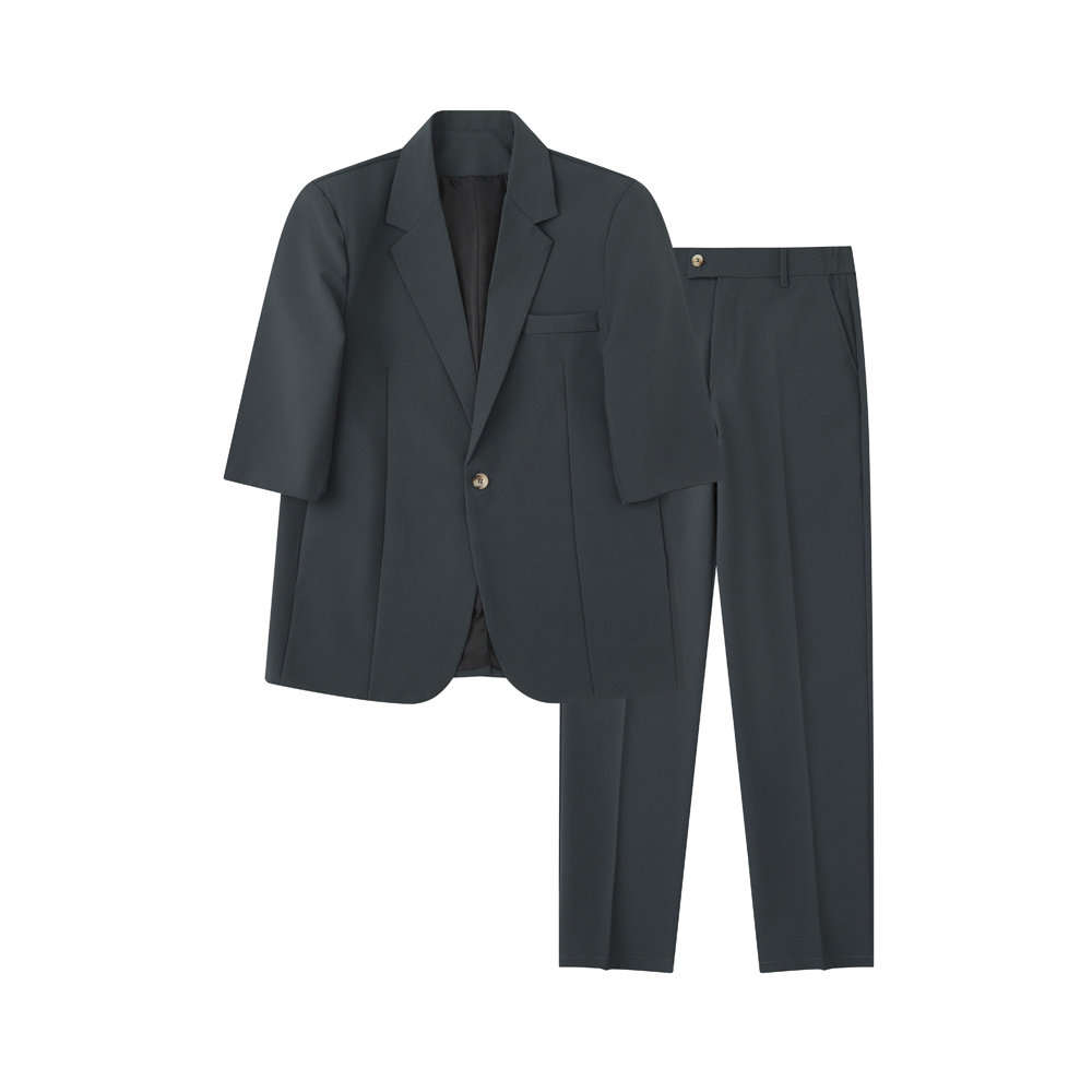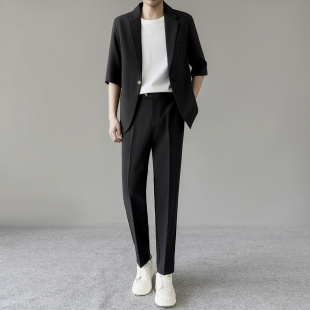 男休闲帅气西服西裤 套装 两件套垂感百搭 西装 宽松轻熟风高级感短袖