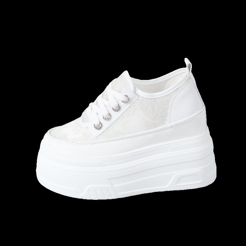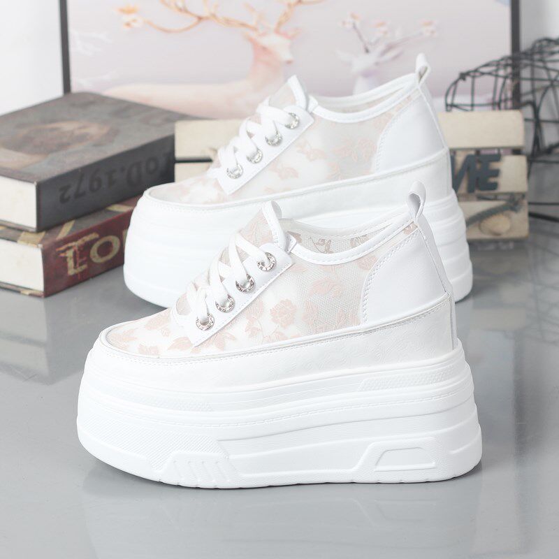 百搭休闲网鞋 12CM松糕鞋 女小个子厚底内增高10 2024夏网面小白鞋